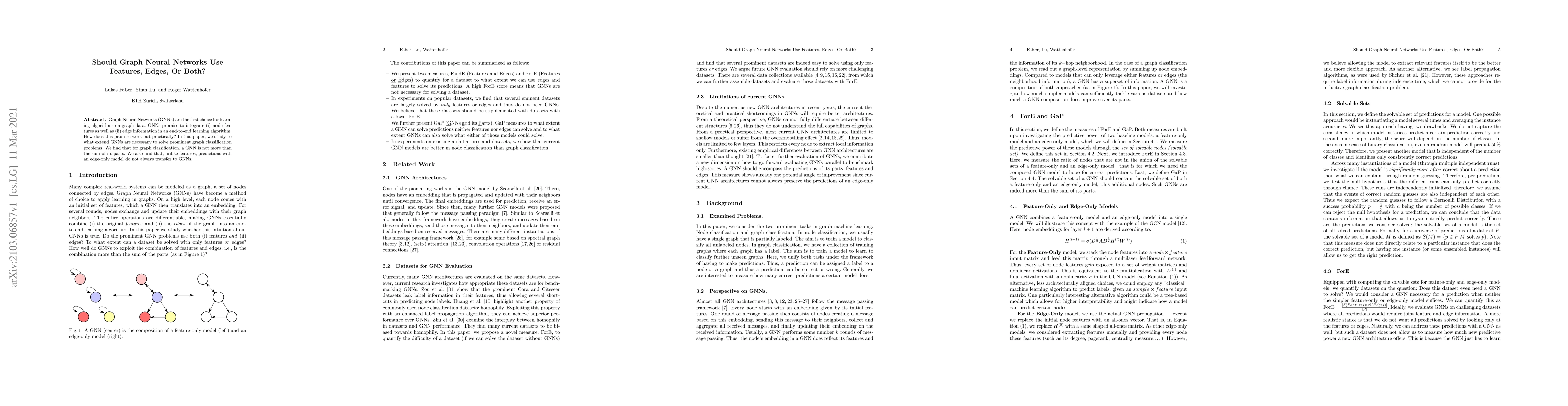 Graph Neural Networks (GNNs) are the first choice for learning algorithms on graph data. GNNs promise to integrate (i) node features as well as (ii) edge information in an end-to-end learning algorithm. How does this promise work out practically? In this paper, we study to what extend GNNs are necessary to solve prominent graph classification problems. We find that for graph classification, a GNN is not more than the sum of its parts. We also find that, unlike features, predictions with an edge-only model do not always transfer to GNNs.