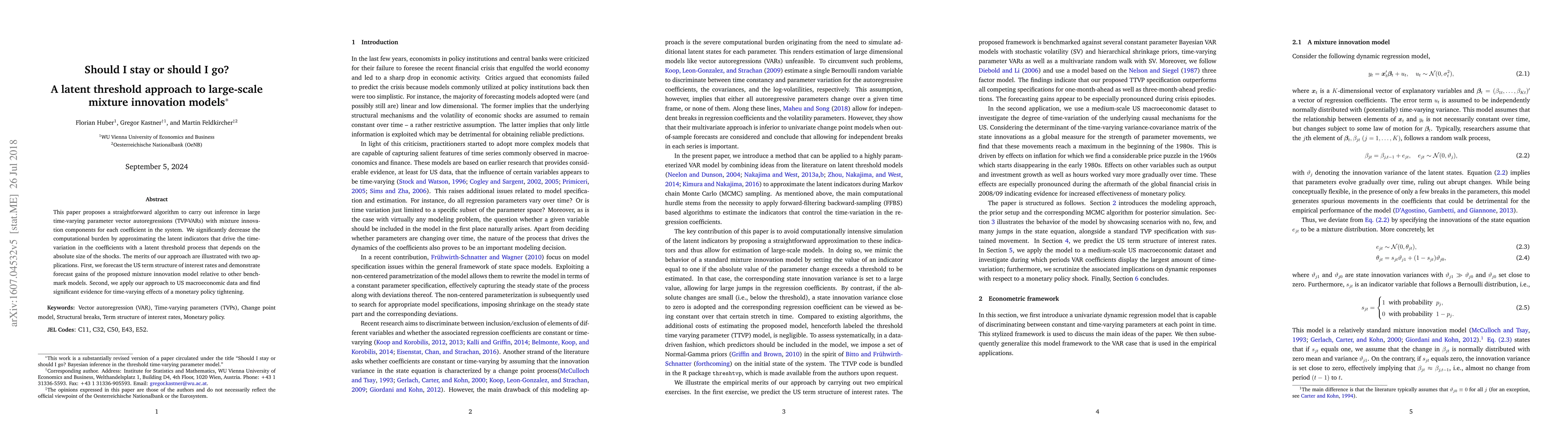 This paper proposes a straightforward algorithm to carry out inference in large time-varying parameter vector autoregressions (TVP-VARs) with mixture innovation components for each coefficient in the system. We significantly decrease the computational burden by approximating the latent indicators that drive the time-variation in the coefficients with a latent threshold process that depends on the absolute size of the shocks. The merits of our approach are illustrated with two applications. First, we forecast the US term structure of interest rates and demonstrate forecast gains of the proposed mixture innovation model relative to other benchmark models. Second, we apply our approach to US macroeconomic data and find significant evidence for time-varying effects of a monetary policy tightening.
