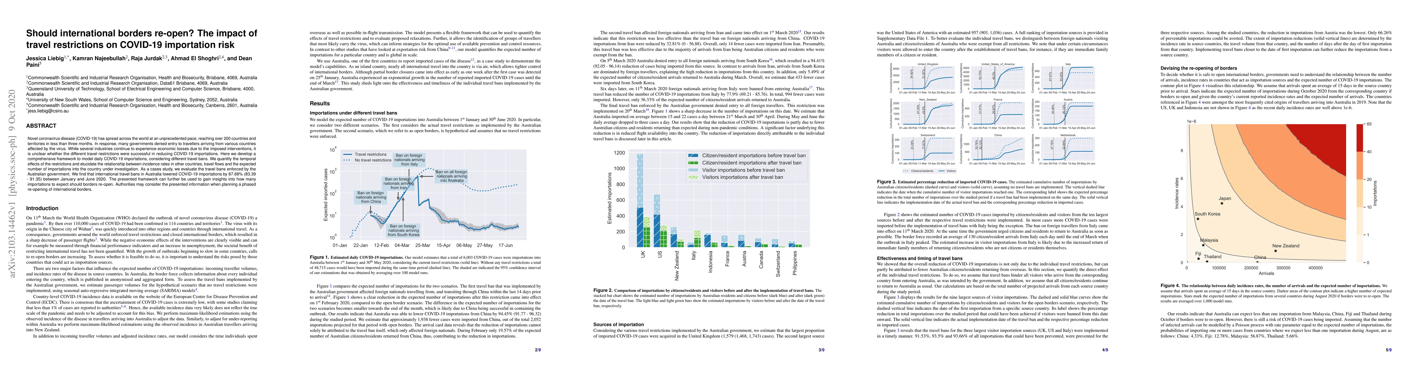 Novel coronavirus disease (COVID-19) has spread across the world at an unprecedented pace, reaching over 200 countries and territories in less than three months. In response, many governments denied entry to travellers arriving from various countries affected by the virus. While several industries continue to experience economic losses due to the imposed interventions, it is unclear whether the different travel restrictions were successful in reducing COVID-19 importations. Here we develop a comprehensive framework to model daily COVID-19 importations, considering different travel bans. We quantify the temporal effects of the restrictions and elucidate the relationship between incidence rates in other countries, travel flows and the expected number of importations into the country under investigation. As a cases study, we evaluate the travel bans enforced by the Australian government. We find that international travel bans in Australia lowered COVID-19 importations by 87.68% (83.39 - 91.35) between January and June 2020. The presented framework can further be used to gain insights into how many importations to expect should borders re-open. Authorities may consider the presented information when planning a phased re-opening of international borders.