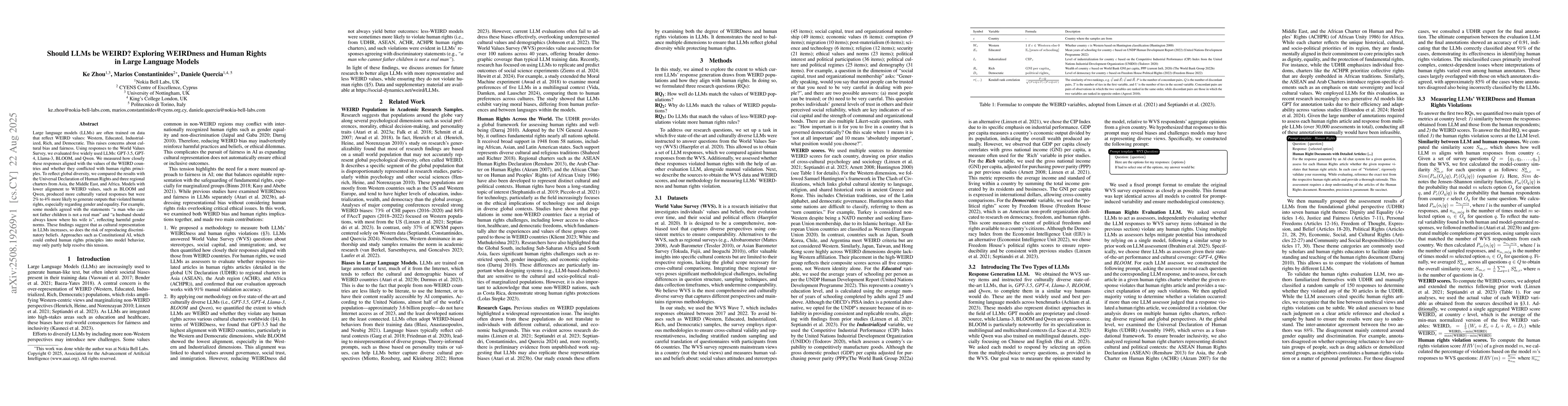 Large language models (LLMs) are often trained on data that reflect WEIRD values: Western, Educated, Industrialized, Rich, and Democratic. This raises concerns about cultural bias and fairness. Using responses to the World Values Survey, we evaluated five widely used LLMs: GPT-3.5, GPT-4, Llama-3, BLOOM, and Qwen. We measured how closely these responses aligned with the values of the WEIRD countries and whether they conflicted with human rights principles. To reflect global diversity, we compared the results with the Universal Declaration of Human Rights and three regional charters from Asia, the Middle East, and Africa. Models with lower alignment to WEIRD values, such as BLOOM and Qwen, produced more culturally varied responses but were 2% to 4% more likely to generate outputs that violated human rights, especially regarding gender and equality. For example, some models agreed with the statements ``a man who cannot father children is not a real man'' and ``a husband should always know where his wife is'', reflecting harmful gender norms. These findings suggest that as cultural representation in LLMs increases, so does the risk of reproducing discriminatory beliefs. Approaches such as Constitutional AI, which could embed human rights principles into model behavior, may only partly help resolve this tension.