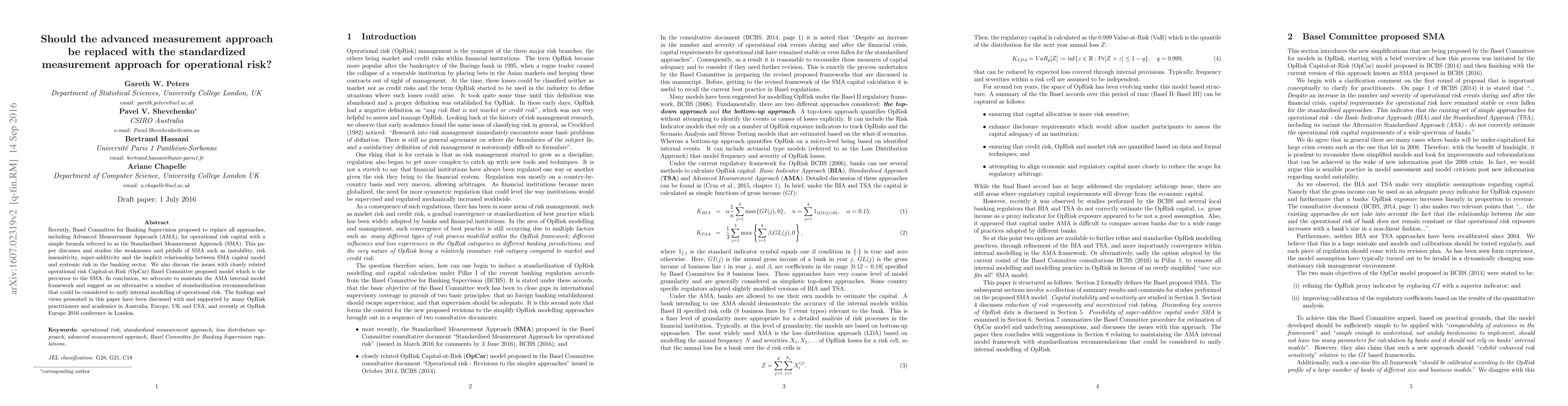 This paper critiques the proposed replacement of the Advanced Measurement Approach (AMA) for operational risk with the Standardised Measurement Approach (SMA), highlighting SMA's weaknesses such as instability and risk insensitivity. It advocates maintaining AMA and suggests standardization recommendations to unify operational risk modeling.