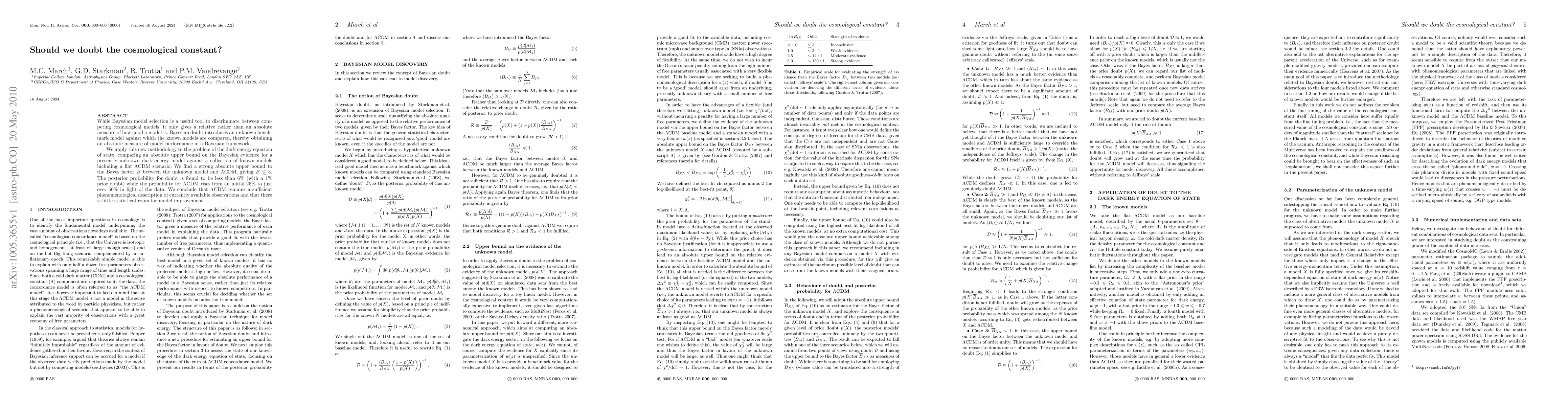 While Bayesian model selection is a useful tool to discriminate between competing cosmological models, it only gives a relative rather than an absolute measure of how good a model is. Bayesian doubt introduces an unknown benchmark model against which the known models are compared, thereby obtaining an absolute measure of model performance in a Bayesian framework. We apply this new methodology to the problem of the dark energy equation of state, comparing an absolute upper bound on the Bayesian evidence for a presently unknown dark energy model against a collection of known models including a flat LambdaCDM scenario. We find a strong absolute upper bound to the Bayes factor B between the unknown model and LambdaCDM, giving B < 3. The posterior probability for doubt is found to be less than 6% (with a 1% prior doubt) while the probability for LambdaCDM rises from an initial 25% to just over 50% in light of the data. We conclude that LambdaCDM remains a sufficient phenomenological description of currently available observations and that there is little statistical room for model improvement.
