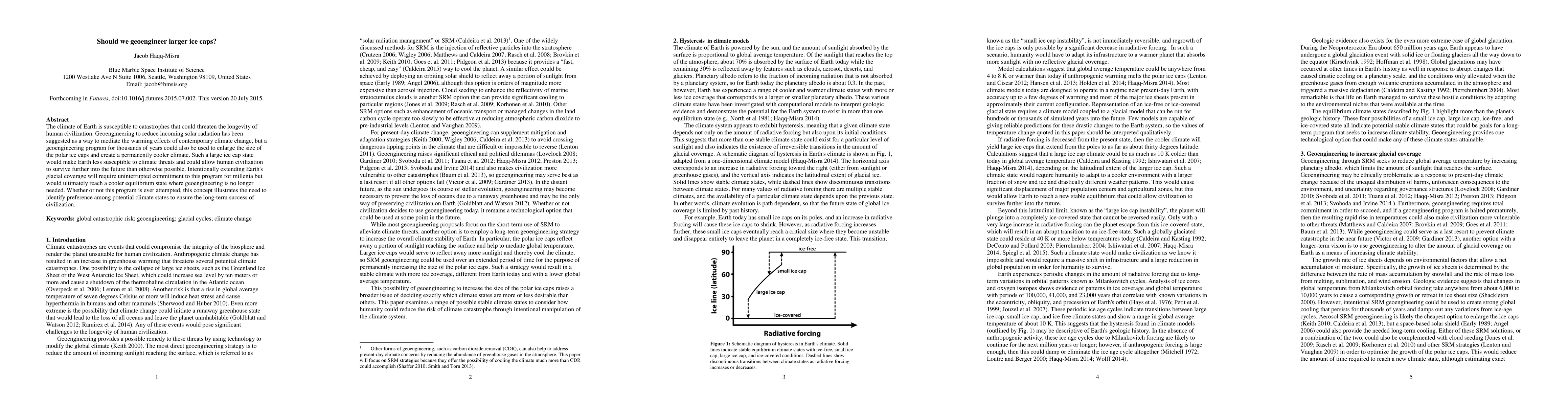 Geoengineering could create a permanently cooler climate by enlarging polar ice caps, potentially making Earth less susceptible to climate threats and allowing human civilization to survive longer. This concept highlights the need to identify preferred climate states for long-term success.