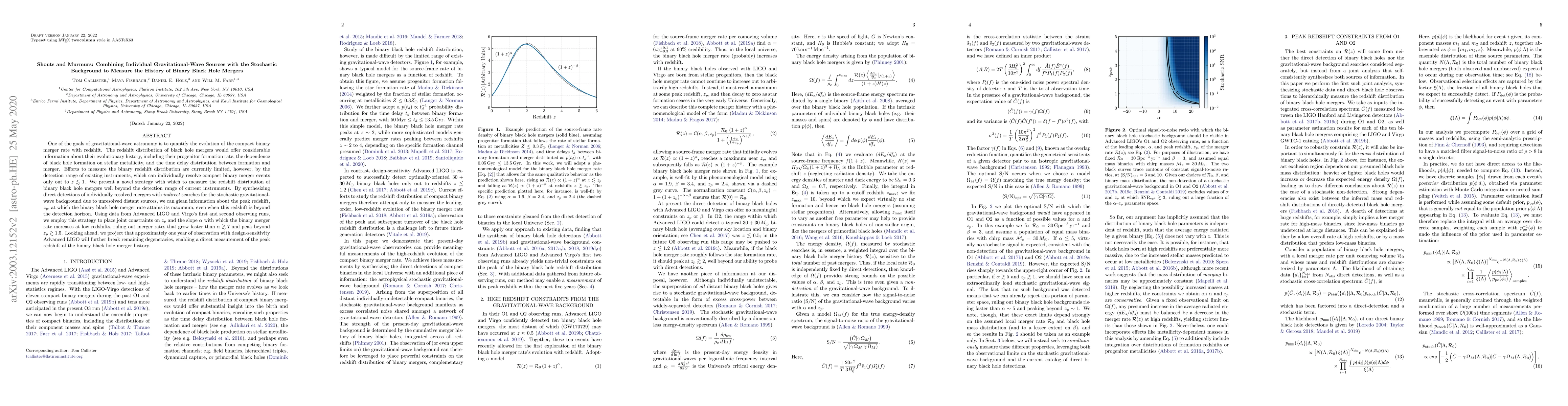 One of the goals of gravitational-wave astronomy is to quantify the evolution of the compact binary merger rate with redshift. The redshift distribution of black hole mergers would offer considerable information about their evolutionary history, including their progenitor formation rate, the dependence of black hole formation on stellar metallicity, and the time delay distribution between formation and merger. Efforts to measure the binary redshift distribution are currently limited, however, by the detection range of existing instruments, which can individually resolve compact binary merger events only out to $z\lesssim1$. We present a novel strategy with which to measure the redshift distribution of binary black hole mergers well beyond the detection range of current instruments. By synthesizing direct detections of individually resolved mergers with \textit{indirect} searches for the stochastic gravitational-wave background due to unresolved distant sources, we can glean information about the peak redshift, $z_p$, at which the binary black hole merger rate attains its maximum, even when this redshift is beyond the detection horizon. Using data from Advanced LIGO and Virgo's first and second observing runs, we employ this strategy to place joint constraints on $z_p$ and the slope $\alpha$ with which the binary merger rate increases at low redshifts, ruling out merger rates that grow faster than $\alpha \gtrsim 7$ and peak beyond $z_p \gtrsim 1.5$. Looking ahead, we project that approximately one year of observation with design-sensitivity Advanced LIGO will further break remaining degeneracies, enabling a direct measurement of the peak redshift of the binary black hole merger history.
