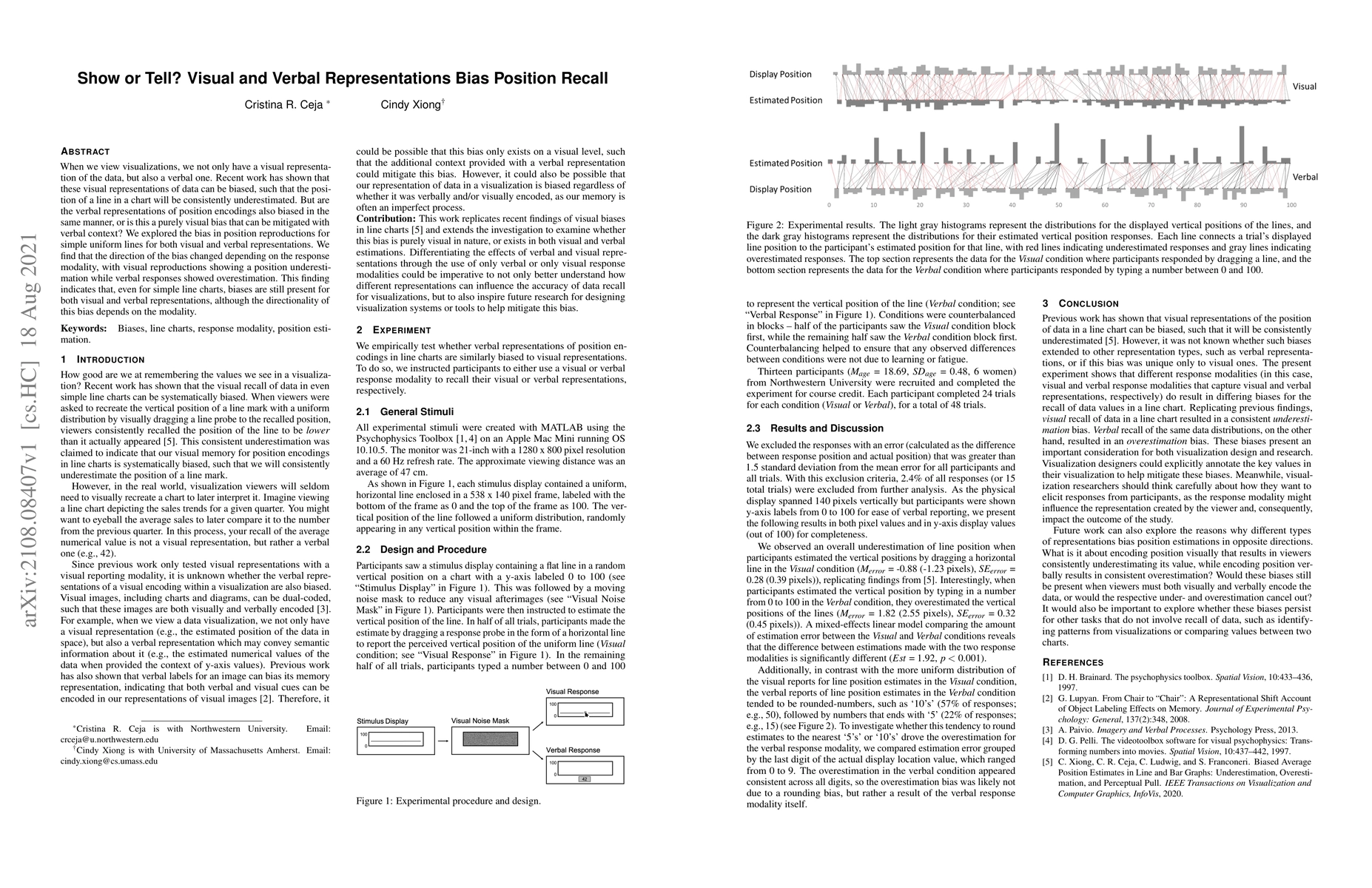 This study investigates whether biases in position recall are influenced by visual or verbal representations, finding that while visual representations lead to underestimation, verbal representations result in overestimation. The results suggest that biases in data interpretation persist across both modalities, though they manifest differently.