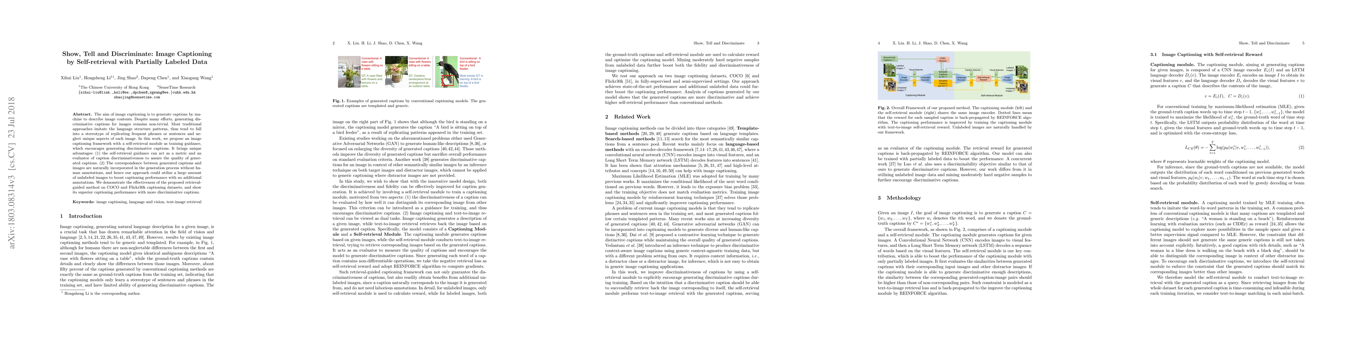 A new image captioning framework uses self-retrieval to generate more discriminative captions without human annotations, outperforming traditional methods on COCO and Flickr30k datasets.