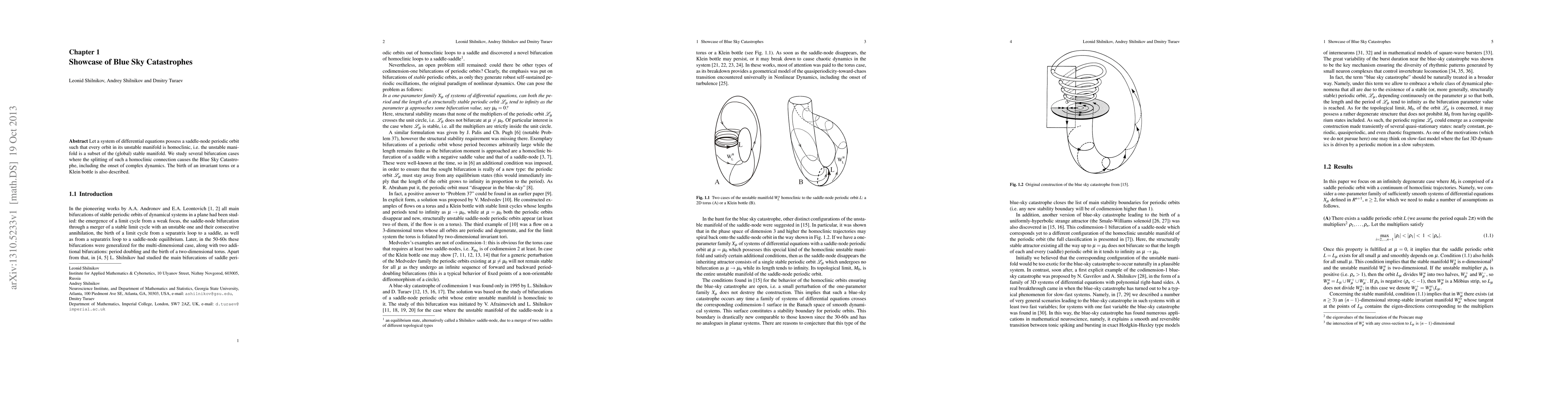 Let a system of differential equations possess a saddle-node periodic orbit such that every orbit in its unstable manifold is homoclinic, i.e. the unstable manifold is a subset of the (global) stable manifold. We study several bifurcation cases where the splitting of such a homoclinic connection causes the Blue Sky Catastrophe, including the onset of complex dynamics. The birth of an invariant torus or a Klein bottle is also described.
