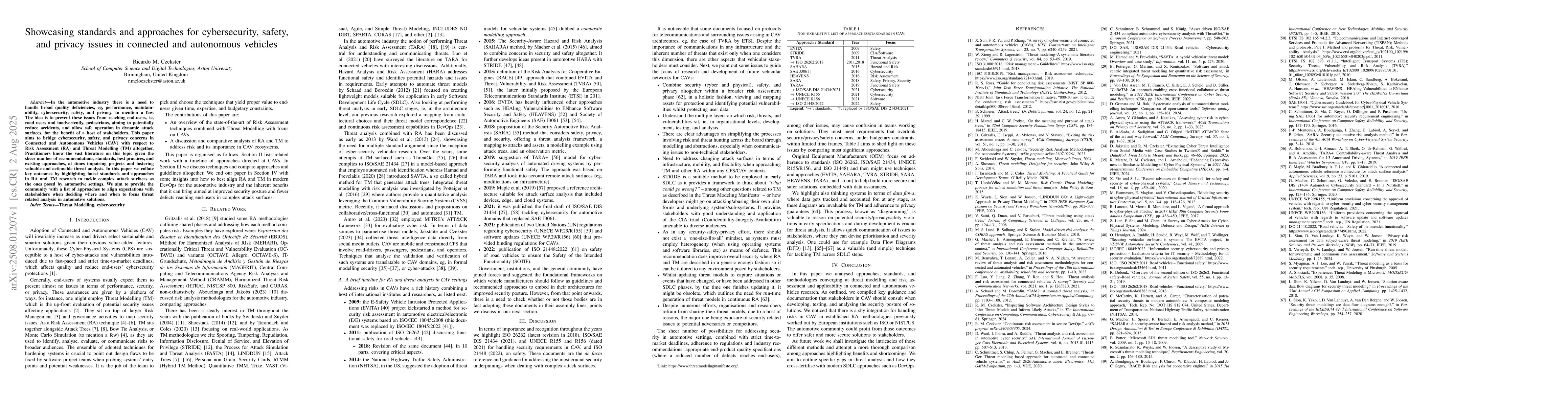 In the automotive industry there is a need to handle broad quality deficiencies, eg, performance, maintainability, cybersecurity, safety, and privacy, to mention a few. The idea is to prevent these issues from reaching end-users, ie, road users and inadvertently, pedestrians, aiming to potentially reduce accidents, and allow safe operation in dynamic attack surfaces, for the benefit of a host of stakeholders. This paper aims to bridge cybersecurity, safety, and privacy concerns in Connected and Autonomous Vehicles (CAV) with respect to Risk Assessment (RA) and Threat Modelling (TM) altogether. Practitioners know the vast literature on this topic given the sheer number of recommendations, standards, best practices, and existing approaches, at times impairing projects and fostering valuable and actionable threat analysis. In this paper we collate key outcomes by highlighting latest standards and approaches in RA and TM research to tackle complex attack surfaces as the ones posed by automotive settings. We aim to provide the community with a list of approaches to align expectations with stakeholders when deciding where and when to focus threat related analysis in automotive solutions.