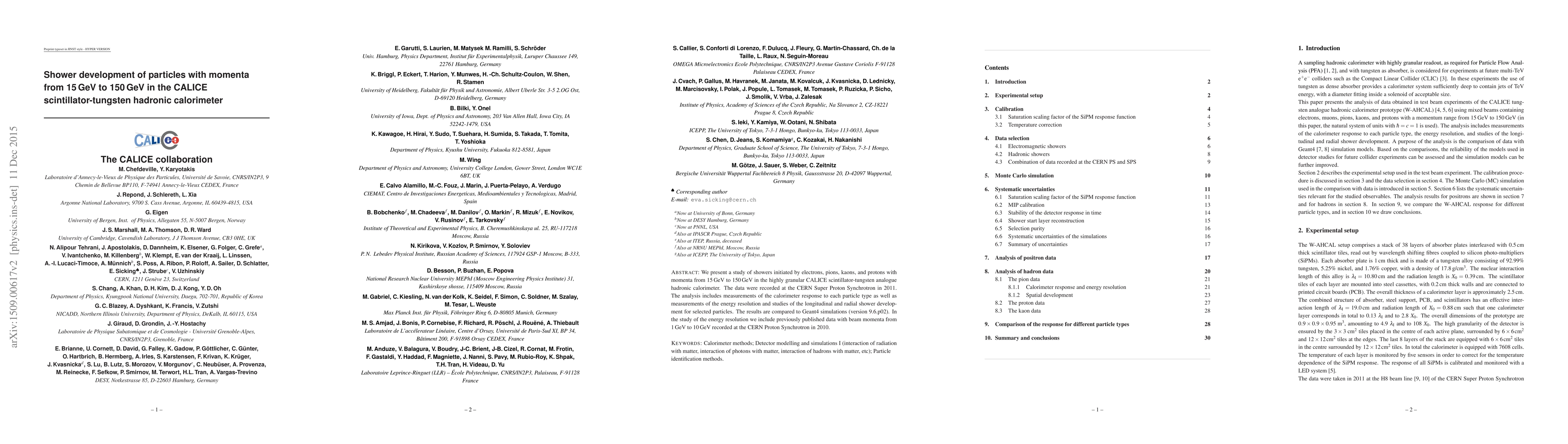 Researchers studied shower development in a highly granular calorimeter using data from 15 GeV to 150 GeV particles, comparing results with simulations.
