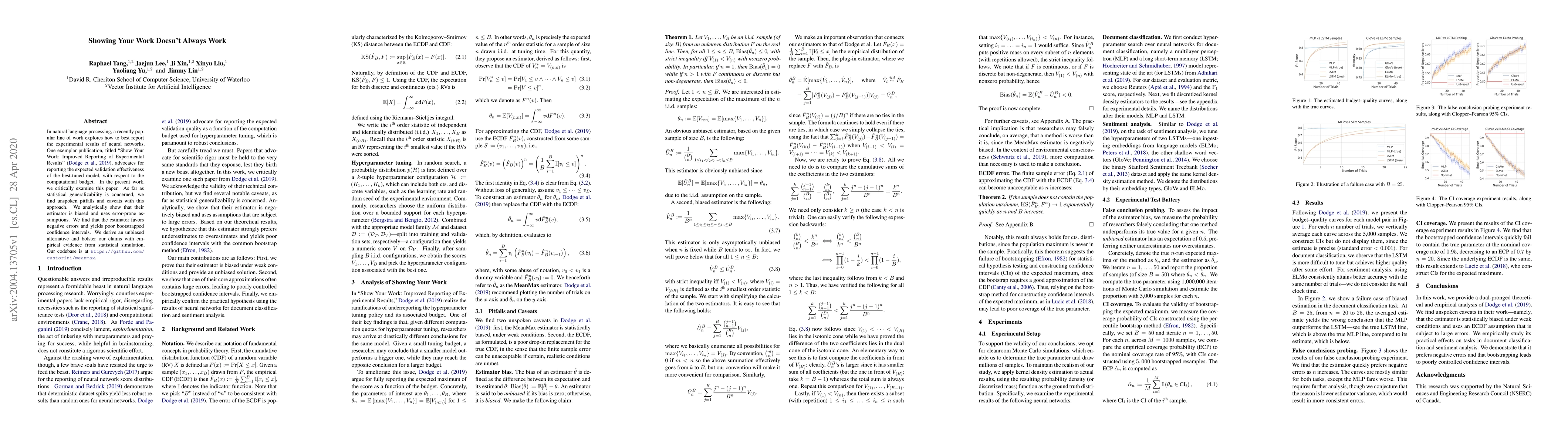 In natural language processing, a recently popular line of work explores how to best report the experimental results of neural networks. One exemplar publication, titled "Show Your Work: Improved Reporting of Experimental Results," advocates for reporting the expected validation effectiveness of the best-tuned model, with respect to the computational budget. In the present work, we critically examine this paper. As far as statistical generalizability is concerned, we find unspoken pitfalls and caveats with this approach. We analytically show that their estimator is biased and uses error-prone assumptions. We find that the estimator favors negative errors and yields poor bootstrapped confidence intervals. We derive an unbiased alternative and bolster our claims with empirical evidence from statistical simulation. Our codebase is at http://github.com/castorini/meanmax.