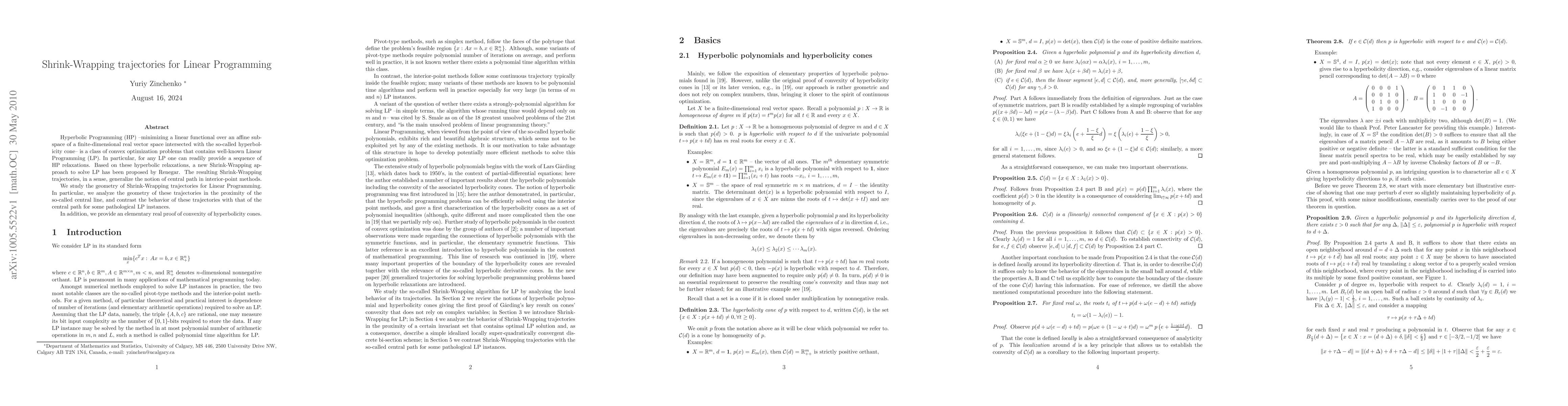 Hyperbolic Programming (HP) --minimizing a linear functional over an affine subspace of a finite-dimensional real vector space intersected with the so-called hyperbolicity cone-- is a class of convex optimization problems that contains well-known Linear Programming (LP). In particular, for any LP one can readily provide a sequence of HP relaxations. Based on these hyperbolic relaxations, a new Shrink-Wrapping approach to solve LP has been proposed by Renegar. The resulting Shrink-Wrapping trajectories, in a sense, generalize the notion of central path in interior-point methods. We study the geometry of Shrink-Wrapping trajectories for Linear Programming. In particular, we analyze the geometry of these trajectories in the proximity of the so-called central line, and contrast the behavior of these trajectories with that of the central path for some pathological LP instances. In addition, we provide an elementary proof of convexity of hyperbolicity cones over reals.