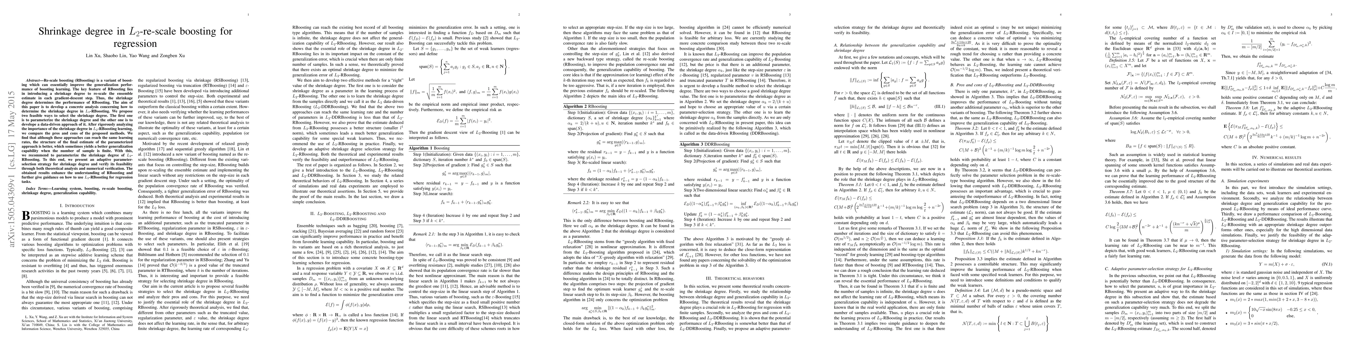 This paper analyzes the shrinkage degree in $L_2$-re-scale boosting for regression, proposing two methods for determining it: a parameterized approach and a data-driven method. The study finds that the parameterized method, despite similar learning rates, often yields better generalization due to a better final estimate structure, thus recommending its use with an adaptive parameter-selection strategy.