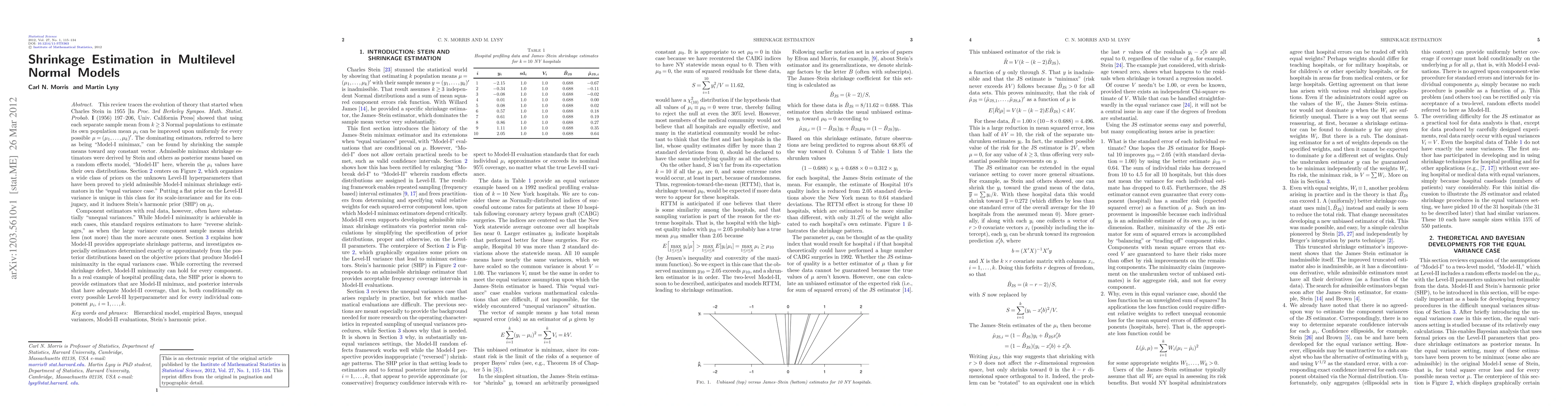 This paper reviews the development of shrinkage estimation in multilevel Normal models, starting from Charles Stein's 1955 improvement on estimating population means using sample means. It highlights the dominance of Model-I minimax estimators, derived from shrinking sample means toward constants, and Model-II admissible minimax estimators based on random effects models. The paper focuses on priors for Level-II hyperparameters, identifying a flat prior on Level-II variance as unique for its scale-invariance and conjugacy, which induces Stein's harmonic prior on $mu_i$.