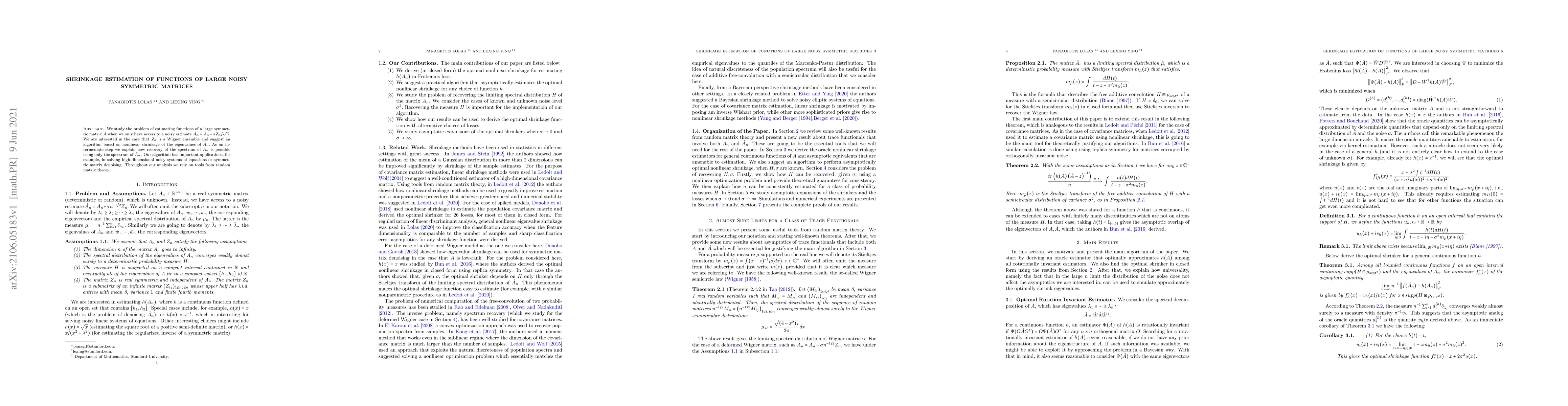 We study the problem of estimating functions of a large symmetric matrix $A_n$ when we only have access to a noisy estimate $\hat{A}_n=A_n+\sigma Z_n/\sqrt{n}.$ We are interested in the case that $Z_n$ is a Wigner ensemble and suggest an algorithm based on nonlinear shrinkage of the eigenvalues of $\hat{A}_n.$ As an intermediate step we explain how recovery of the spectrum of $A_n$ is possible using only the spectrum of $\hat{A}_n$. Our algorithm has important applications, for example, in solving high-dimensional noisy systems of equations or symmetric matrix denoising. Throughout our analysis we rely on tools from random matrix theory.