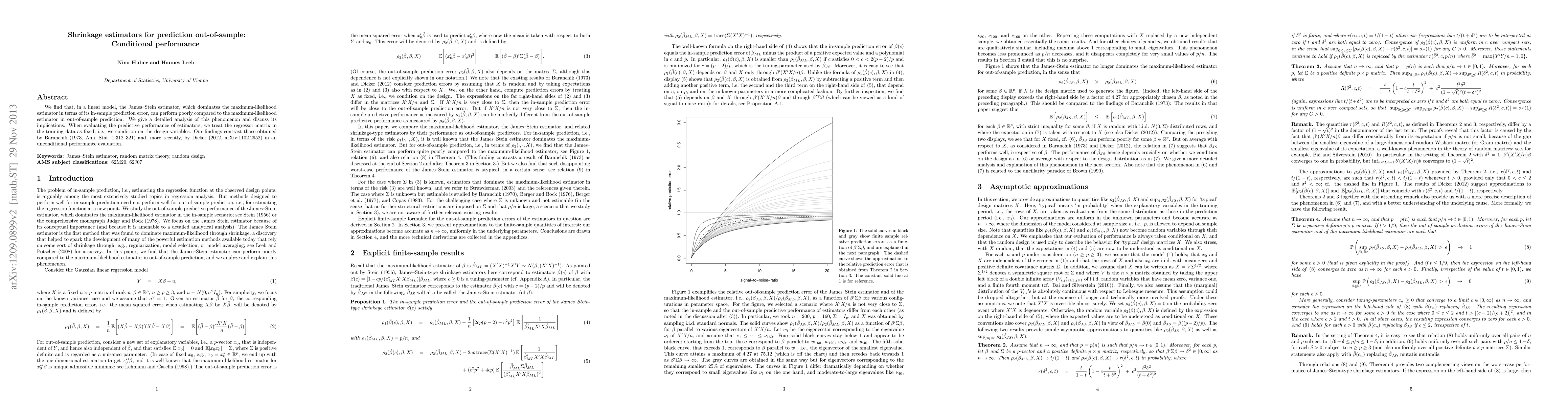 The James-Stein estimator performs poorly out-of-sample compared to the maximum-likelihood estimator in linear models. This counterintuitive finding highlights the importance of considering the conditioning on design variables when evaluating predictive performance.