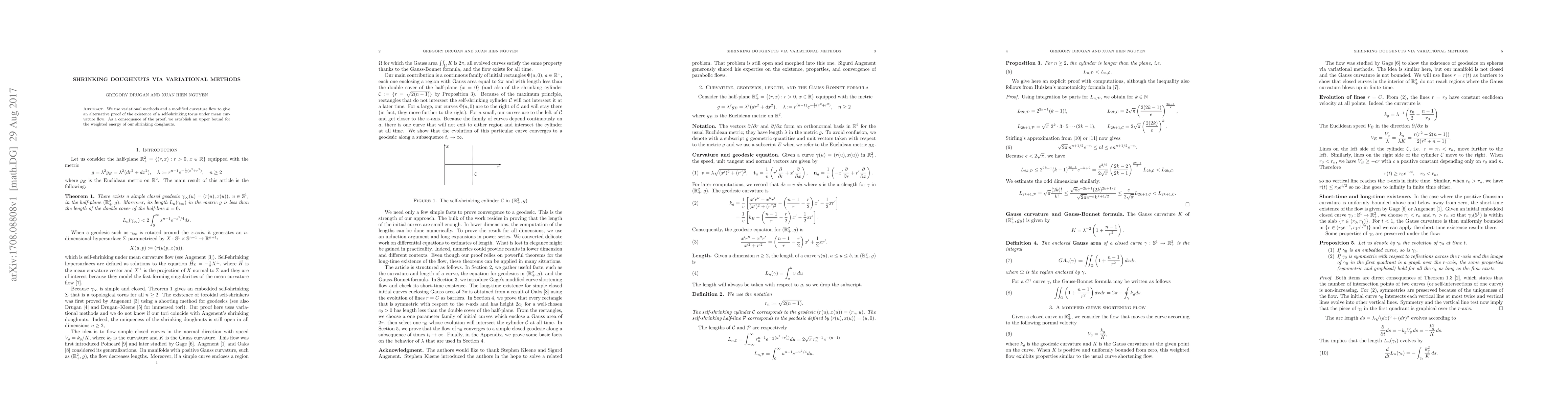 Researchers prove the existence of a self-shrinking torus under mean curvature flow using variational methods and established an upper bound for the weighted energy of shrinking doughnuts.