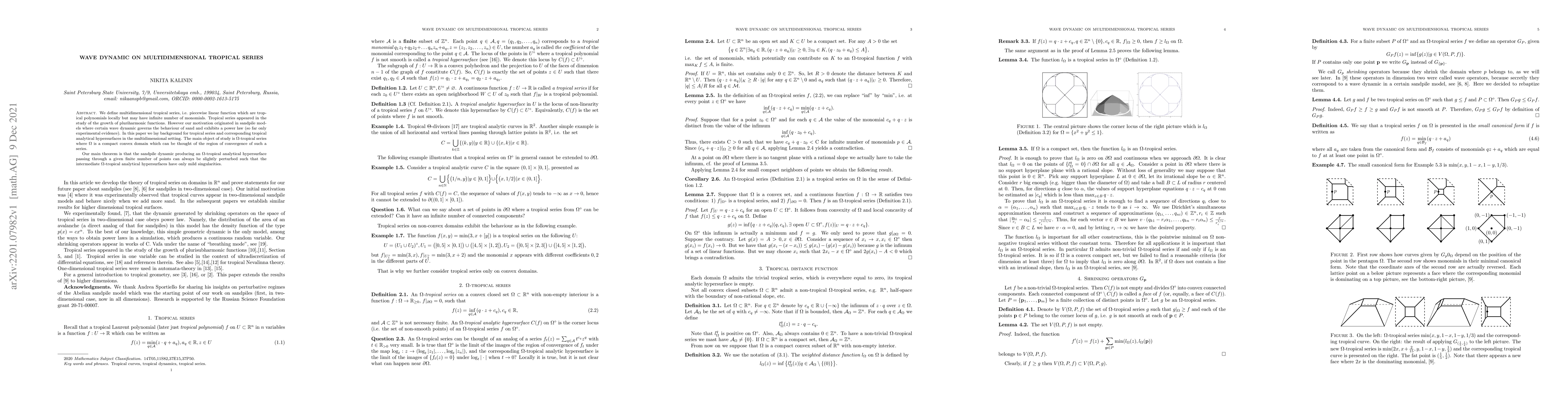 We define multidimensional tropical series, i.e. piecewise linear function which are tropical polynomials locally but may have infinite number of monomials. Tropical series appeared in the study of the growth of pluriharmonic functions. However our motivation originated in sandpile models where certain wave dynamic governs the behaviour of sand and exhibits a power law (so far only experimental evidence). In this paper we lay background for tropical series and corresponding tropical analytical hypersurfaces in the multidimensional setting. The main object of study is $\Omega$-tropical series where $\Omega$ is a compact convex domain which can be thought of the region of convergence of such a series. Our main theorem is that the sandpile dynamic producing an $\Omega$-tropical analytical hypersurface passing through a given finite number of points can always be slightly perturbed such that the intermediate $\Omega$-tropical analytical hypersurfaces have only mild singularities.