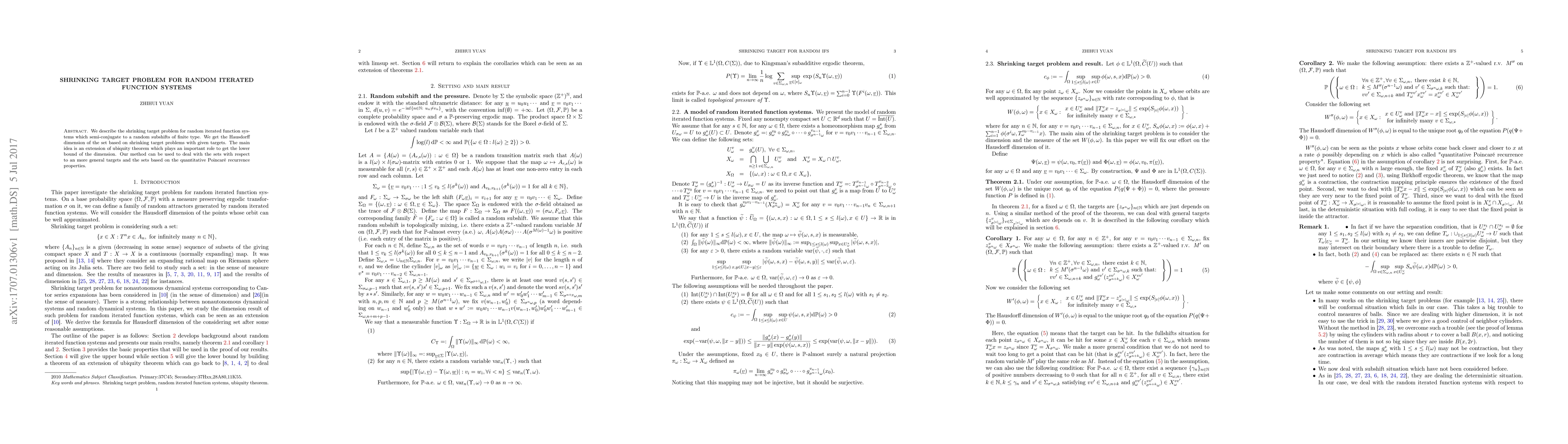 This paper explores the shrinking target problem for random iterated function systems, focusing on their semi-conjugacy to random subshifts. The authors determine the Hausdorff dimension of the set using an extended ubiquity theorem to establish a lower bound, applicable to more general targets and sets with quantitative Poincaré recurrence properties.