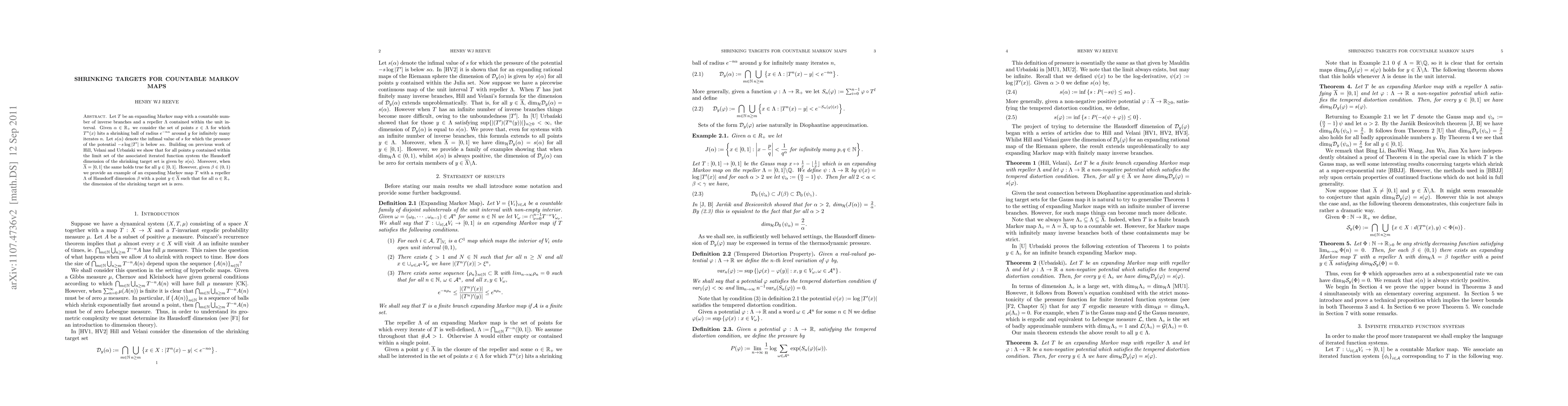 This research explores shrinking target sets for expanding Markov maps with countable inverse branches and a repeller in the unit interval. It establishes that the Hausdorff dimension of such sets is determined by a specific pressure function, s(α). However, an example is provided showing that under certain conditions, the dimension of these shrinking target sets can be zero, contradicting the initial findings.