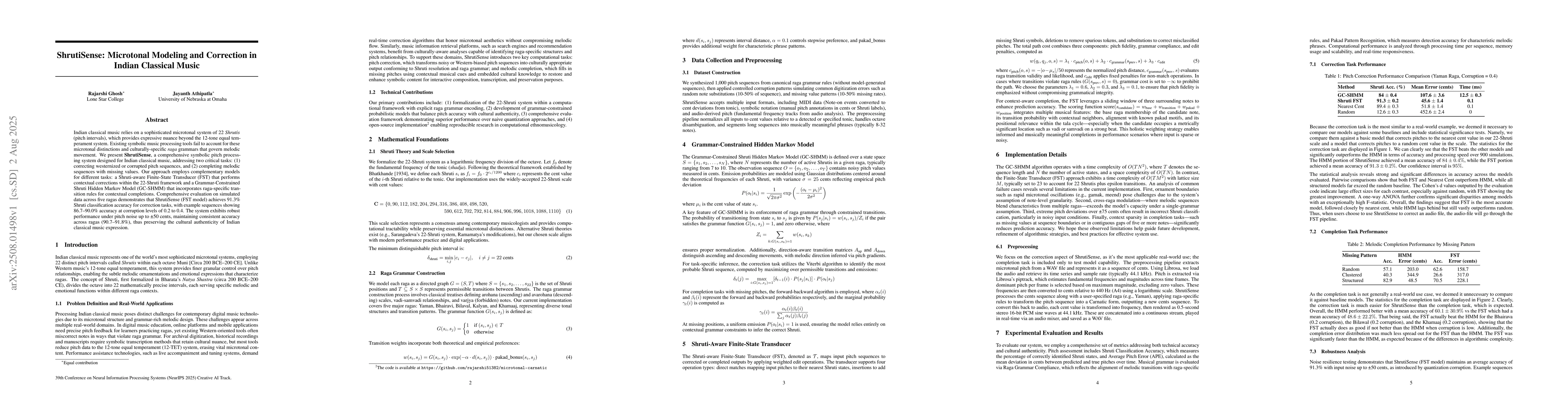 Indian classical music relies on a sophisticated microtonal system of 22 shrutis (pitch intervals), which provides expressive nuance beyond the 12-tone equal temperament system. Existing symbolic music processing tools fail to account for these microtonal distinctions and culturally specific raga grammars that govern melodic movement. We present ShrutiSense, a comprehensive symbolic pitch processing system designed for Indian classical music, addressing two critical tasks: (1) correcting westernized or corrupted pitch sequences, and (2) completing melodic sequences with missing values. Our approach employs complementary models for different tasks: a Shruti-aware finite-state transducer (FST) that performs contextual corrections within the 22-shruti framework and a grammar-constrained Shruti hidden Markov model (GC-SHMM) that incorporates raga-specific transition rules for contextual completions. Comprehensive evaluation on simulated data across five ragas demonstrates that ShrutiSense (FST model) achieves 91.3% shruti classification accuracy for correction tasks, with example sequences showing 86.7-90.0% accuracy at corruption levels of 0.2 to 0.4. The system exhibits robust performance under pitch noise up to +/-50 cents, maintaining consistent accuracy across ragas (90.7-91.8%), thus preserving the cultural authenticity of Indian classical music expression.