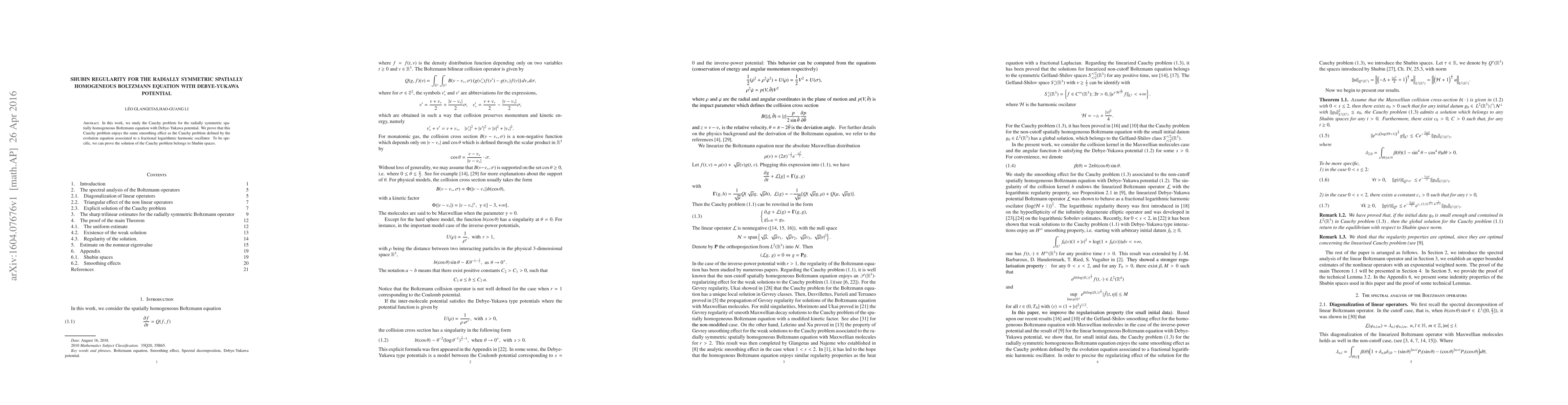This paper investigates the Cauchy problem for the radially symmetric spatially homogeneous Boltzmann equation with Debye-Yukawa potential, proving that it exhibits a smoothing effect akin to the fractional logarithmic harmonic oscillator, with solutions belonging to Shubin spaces.