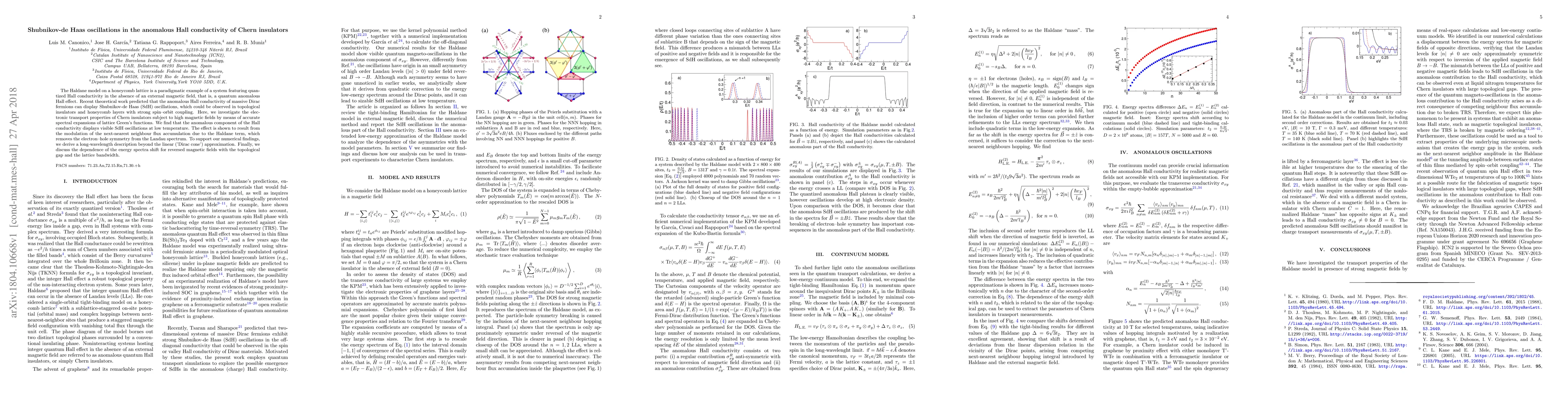 The Haldane model on a honeycomb lattice is a paradigmatic example of a system featuring quantized Hall conductivity in the absence of an external magnetic field, that is, a quantum anomalous Hall effect. Recent theoretical work predicted that the anomalous Hall conductivity of massive Dirac fermions can display Shubnikov-de Haas (SdH) oscillations, which could be observed in topological insulators and honeycomb layers with strong spin--orbit coupling. Here, we investigate the electronic transport properties of Chern insulators subject to high magnetic fields by means of accurate spectral expansions of lattice Green's functions. We find that the anomalous component of the Hall conductivity displays visible SdH oscillations at low temperature. \textcolor{black}{The effect is shown to result from the modulation of the next-nearest neighbour flux accumulation due to the Haldane term,} which removes the electron--hole symmetry from the Landau spectrum. To support our numerical findings, we derive a long-wavelength description beyond the linear ('Dirac cone') approximation. Finally, we discuss the dependence of the energy spectra shift for reversed magnetic fields with the topological gap and the lattice bandwidth.