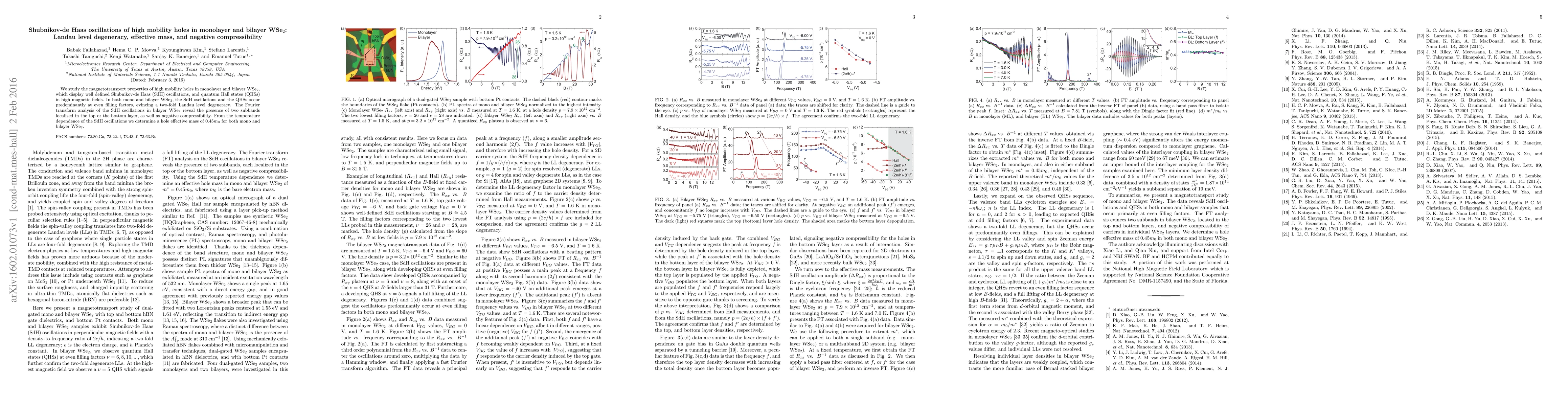 This paper investigates the Shubnikov-de Haas oscillations in high mobility holes in monolayer and bilayer WSe$_2$, revealing two-fold Landau level degeneracy and an effective hole mass of $0.45m_{0}$, alongside evidence of negative compressibility in bilayer WSe$_2$.