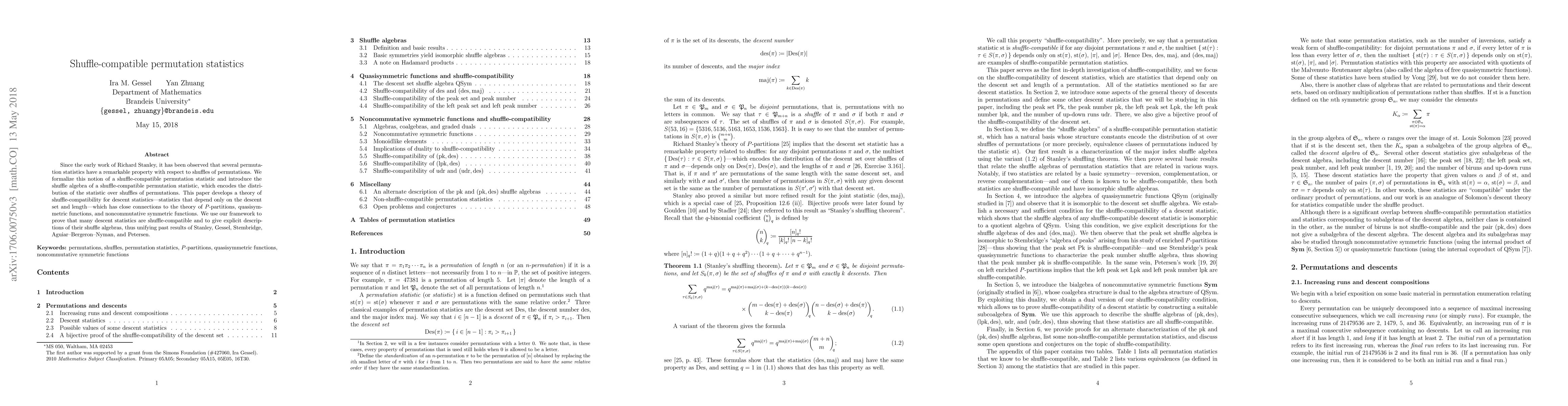 This paper formalizes shuffle-compatible permutation statistics and develops a theory for descent statistics, revealing connections to $P$-partitions, quasisymmetric functions, and noncommutative symmetric functions. It unifies previous results by proving many descent statistics are shuffle-compatible and providing explicit descriptions of their shuffle algebras.