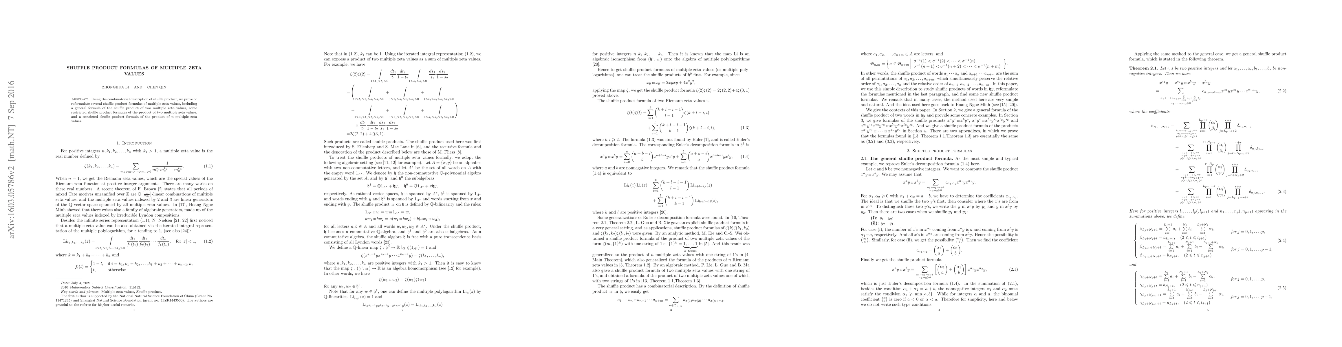 Using the combinatorial description of shuffle product, we prove or reformulate several shuffle product formulas of multiple zeta values, including a general formula of the shuffle product of two multiple zeta values, some restricted shuffle product formulas of the product of two multiple zeta values, and a restricted shuffle product formula of the product of $n$ multiple zeta values.
