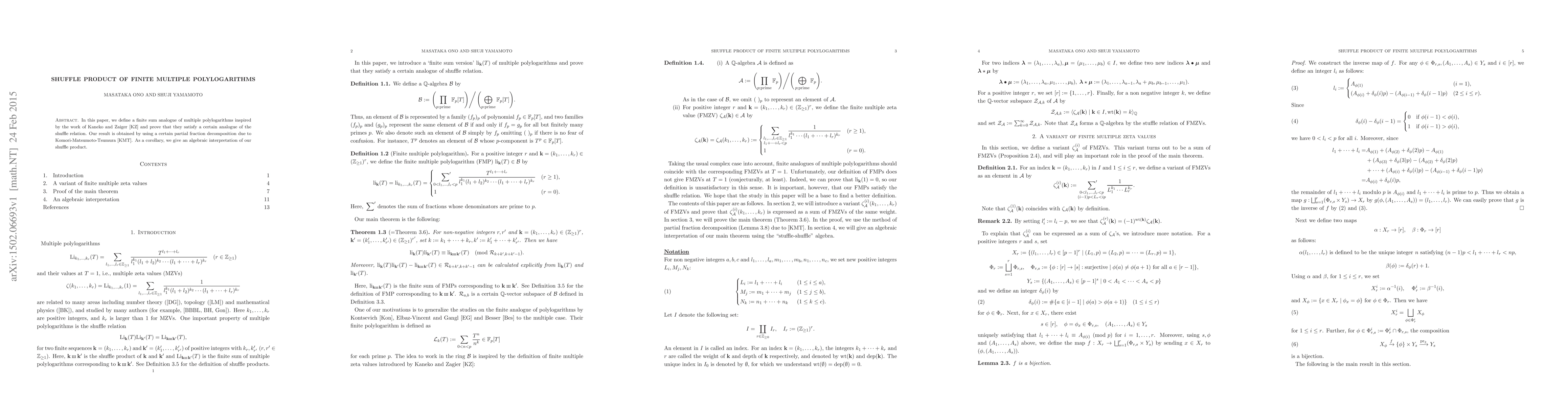 This paper introduces a finite sum analogue of multiple polylogarithms, proving it satisfies a shuffle relation inspired by Kaneko and Zaiger. The result leverages a partial fraction decomposition by Komori-Matsumoto-Tsumura, providing an algebraic interpretation of the shuffle product.