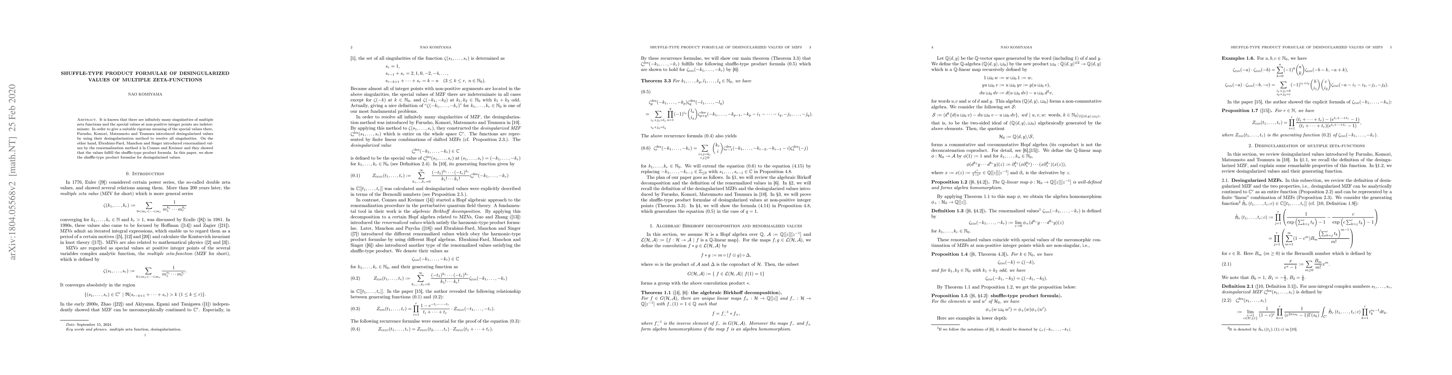 This paper establishes shuffle-type product formulae for desingularized values of multiple zeta-functions, resolving singularities using Furusho et al.'s method, and comparing them with renormalized values from Connes and Kreimer's framework.