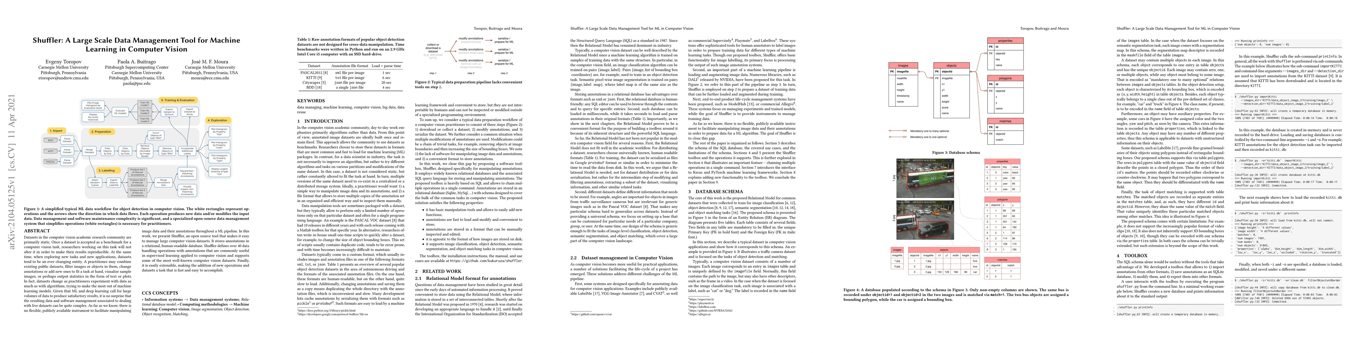 Datasets in the computer vision academic research community are primarily static. Once a dataset is accepted as a benchmark for a computer vision task, researchers working on this task will not alter it in order to make their results reproducible. At the same time, when exploring new tasks and new applications, datasets tend to be an ever changing entity. A practitioner may combine existing public datasets, filter images or objects in them, change annotations or add new ones to fit a task at hand, visualize sample images, or perhaps output statistics in the form of text or plots. In fact, datasets change as practitioners experiment with data as much as with algorithms, trying to make the most out of machine learning models. Given that ML and deep learning call for large volumes of data to produce satisfactory results, it is no surprise that the resulting data and software management associated to dealing with live datasets can be quite complex. As far as we know, there is no flexible, publicly available instrument to facilitate manipulating image data and their annotations throughout a ML pipeline. In this work, we present Shuffler, an open source tool that makes it easy to manage large computer vision datasets. It stores annotations in a relational, human-readable database. Shuffler defines over 40 data handling operations with annotations that are commonly useful in supervised learning applied to computer vision and supports some of the most well-known computer vision datasets. Finally, it is easily extensible, making the addition of new operations and datasets a task that is fast and easy to accomplish.