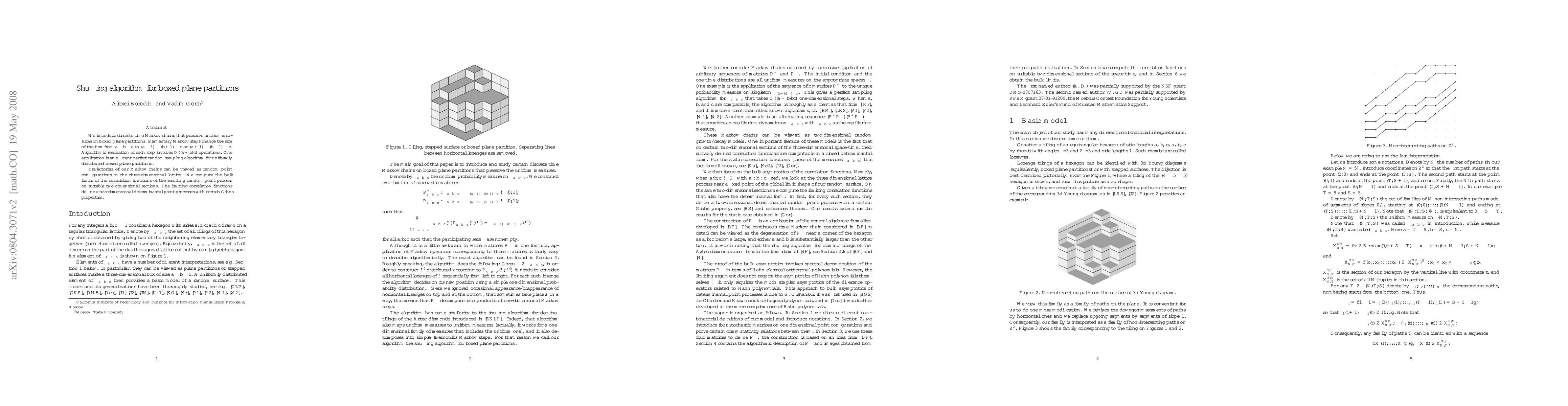 This paper presents a Markov chain algorithm for generating boxed plane partitions uniformly at random. The proposed shuffling algorithm efficiently transforms the partitions and enables perfect random sampling, with correlation functions of the resulting random point configurations converging to a determinantal point process.