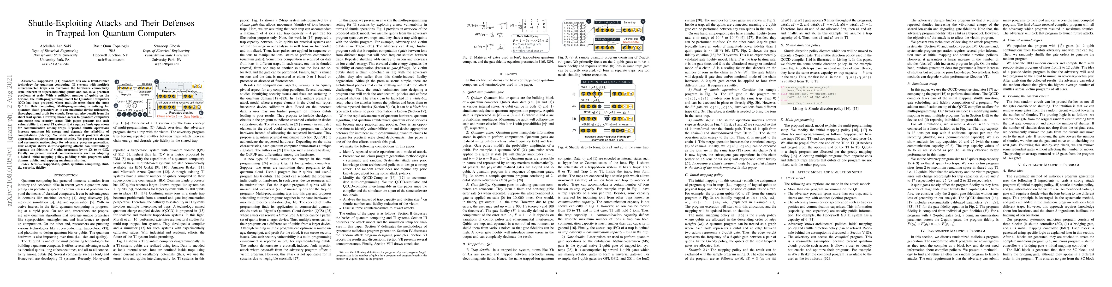 This paper identifies a vulnerability in trapped-ion quantum computers due to shuttle operations for inter-trap communication, which can degrade computation fidelity. It proposes adversarial strategies and countermeasures, including a hybrid mapping policy and program padding, to mitigate the impact of shuttle-exploiting attacks.
