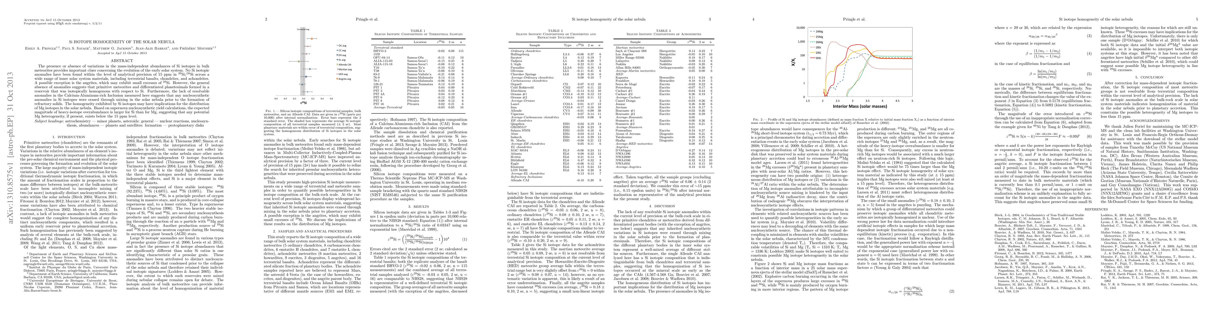 The study finds no significant Si isotopic anomalies across various inner solar system materials, indicating an isotopically homogenous solar nebula. This homogeneity suggests that any potential Mg isotope heterogeneity, if present, is below the detectable level of 15 ppm.