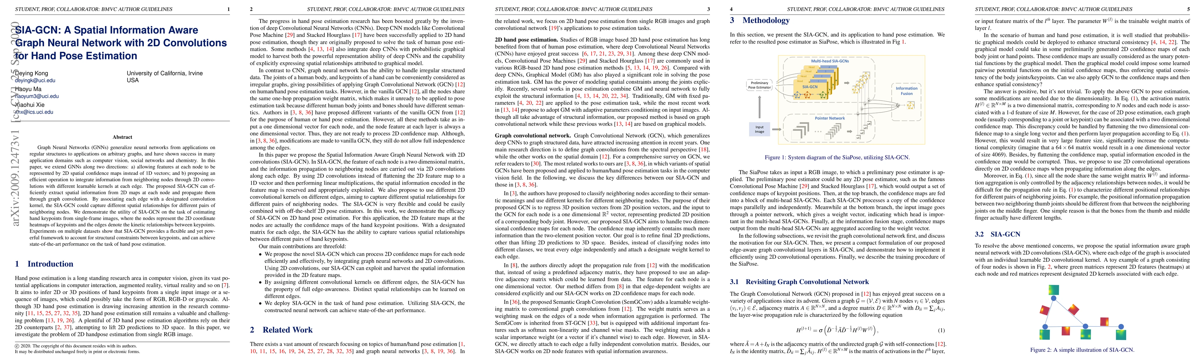 The paper introduces SIA-GCN, a Graph Neural Network that uses 2D spatial confidence maps and 2D convolutions for hand pose estimation. It outperforms existing methods by efficiently extracting and propagating spatial information between keypoints, capturing diverse relationships with learnable edge kernels, and achieving state-of-the-art results in hand keypoint detection from single-frame images.