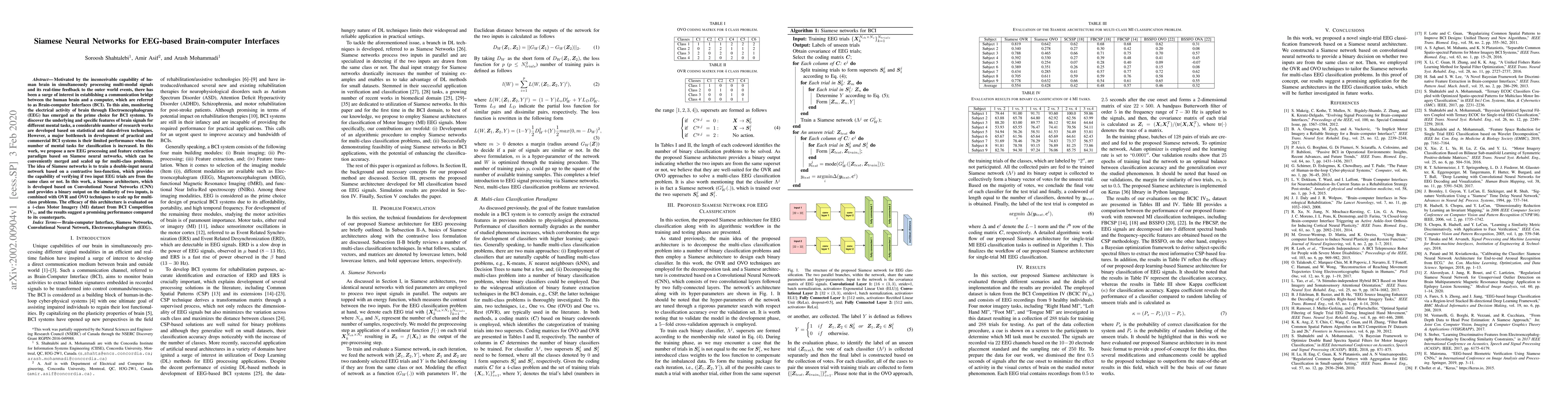This paper proposes a Siamese neural network framework based on Convolutional Neural Networks (CNN) for EEG-based Brain-computer Interfaces (BCI). The model, utilizing contrastive loss, evaluates EEG trial similarities and is enhanced with OVR and OVO techniques for multi-class classification, demonstrating promising performance on a 4-class Motor Imagery dataset.