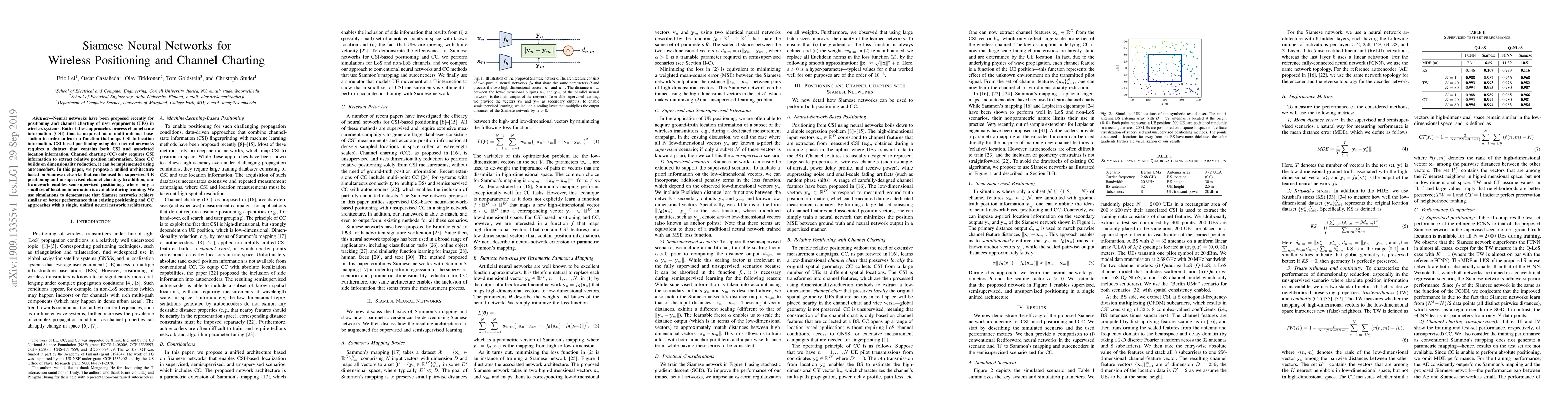 Neural networks have been proposed recently for positioning and channel charting of user equipments (UEs) in wireless systems. Both of these approaches process channel state information (CSI) that is acquired at a multi-antenna base-station in order to learn a function that maps CSI to location information. CSI-based positioning using deep neural networks requires a dataset that contains both CSI and associated location information. Channel charting (CC) only requires CSI information to extract relative position information. Since CC builds on dimensionality reduction, it can be implemented using autoencoders. In this paper, we propose a unified architecture based on Siamese networks that can be used for supervised UE positioning and unsupervised channel charting. In addition, our framework enables semisupervised positioning, where only a small set of location information is available during training. We use simulations to demonstrate that Siamese networks achieve similar or better performance than existing positioning and CC approaches with a single, unified neural network architecture.