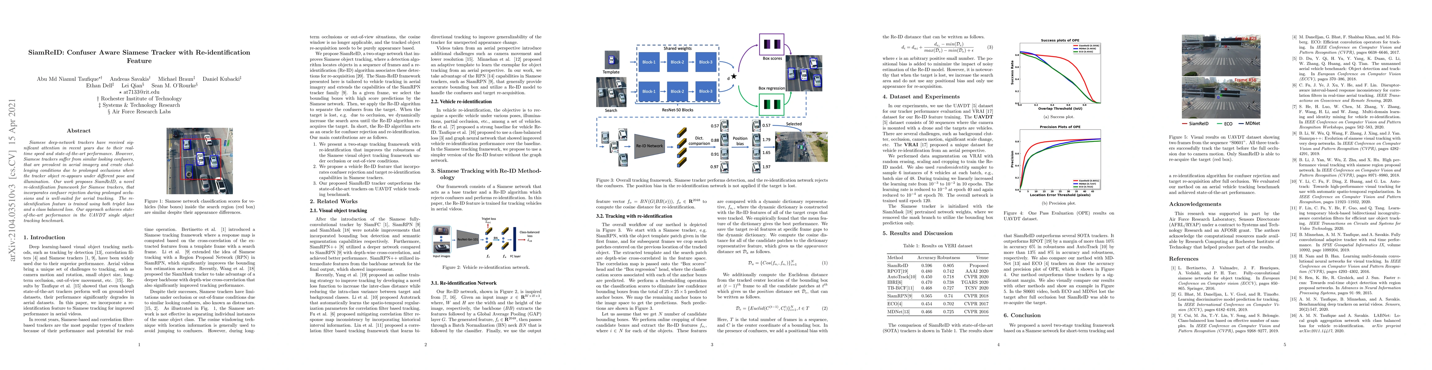 SiamReID introduces a novel re-identification framework for Siamese trackers to handle similar looking confusers during prolonged occlusions, especially in aerial imagery. It achieves state-of-the-art performance using a combination of triplet loss and class balanced loss, outperforming existing methods in the UAVDT benchmark.