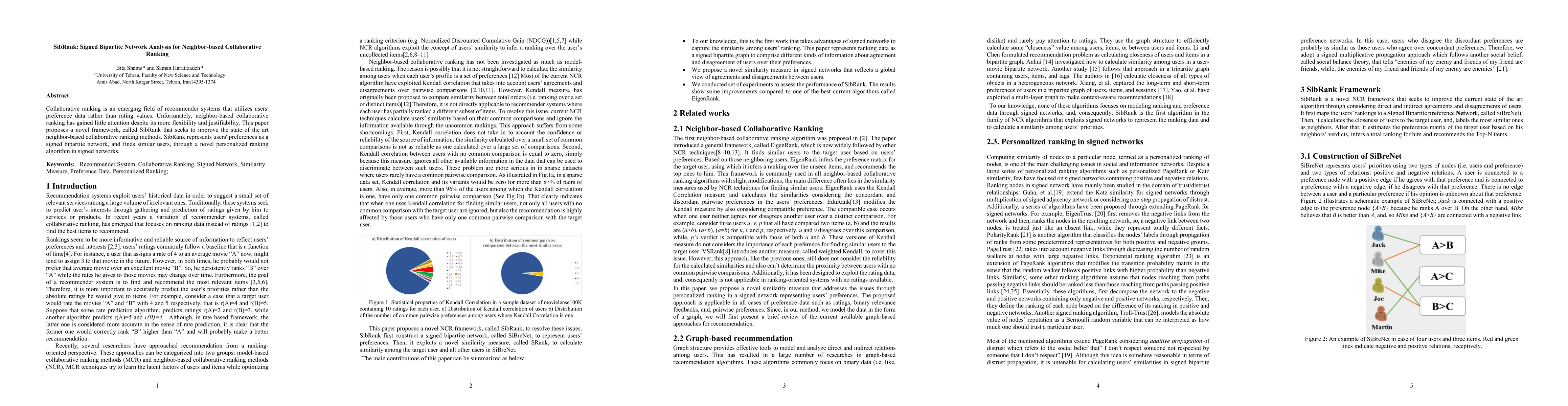 SibRank introduces a novel framework for neighbor-based collaborative ranking by representing users' preferences as a signed bipartite network and employing a personalized ranking algorithm to identify similar users. This approach aims to enhance the flexibility and justifiability of collaborative ranking methods.
