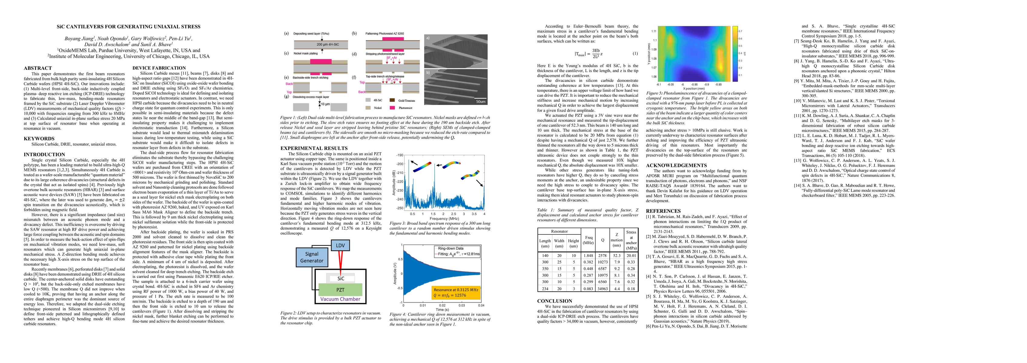 This paper demonstrates the first beam resonators fabricated from bulk high purity semi-insulating 4H Silicon Carbide wafers (HPSI 4H-SiC). Our innovations include: (1) Multi-level front-side, back-side inductively coupled plasma-deep reactive ion etching (ICP-DRIE) technology to fabricate thin, low-mass, bending-mode resonators framed by the SiC substrate (2) Laser Doppler Vibrometer (LDV) measurements of mechanical quality factors (Q) > 10,000 with frequencies ranging from 300 kHz to 8MHz and (3) Calculated uniaxial in-plane surface stress 20 MPa at top surface of resonator base when operating at resonance in vacuum.