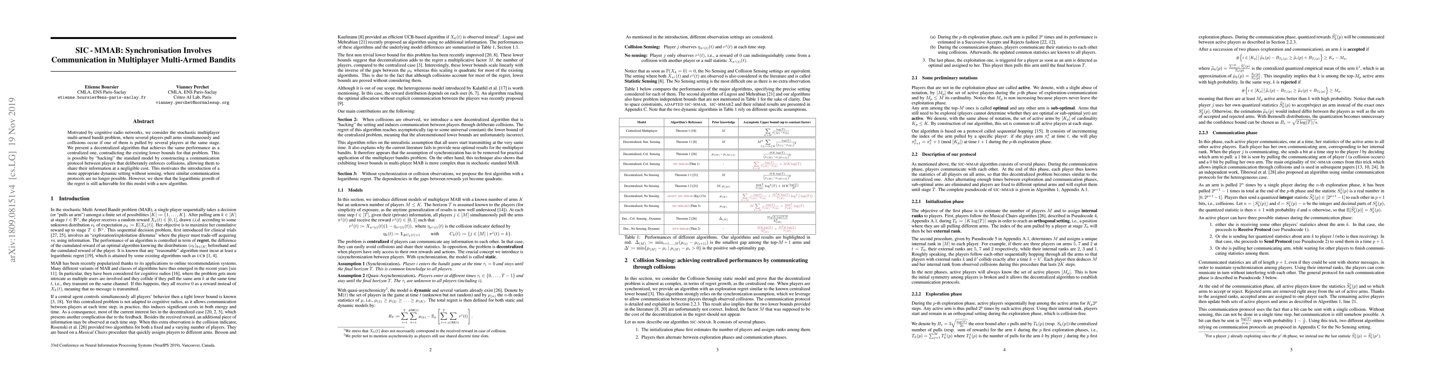 Motivated by cognitive radio networks, we consider the stochastic multiplayer multi-armed bandit problem, where several players pull arms simultaneously and collisions occur if one of them is pulled by several players at the same stage. We present a decentralized algorithm that achieves the same performance as a centralized one, contradicting the existing lower bounds for that problem. This is possible by "hacking" the standard model by constructing a communication protocol between players that deliberately enforces collisions, allowing them to share their information at a negligible cost. This motivates the introduction of a more appropriate dynamic setting without sensing, where similar communication protocols are no longer possible. However, we show that the logarithmic growth of the regret is still achievable for this model with a new algorithm.