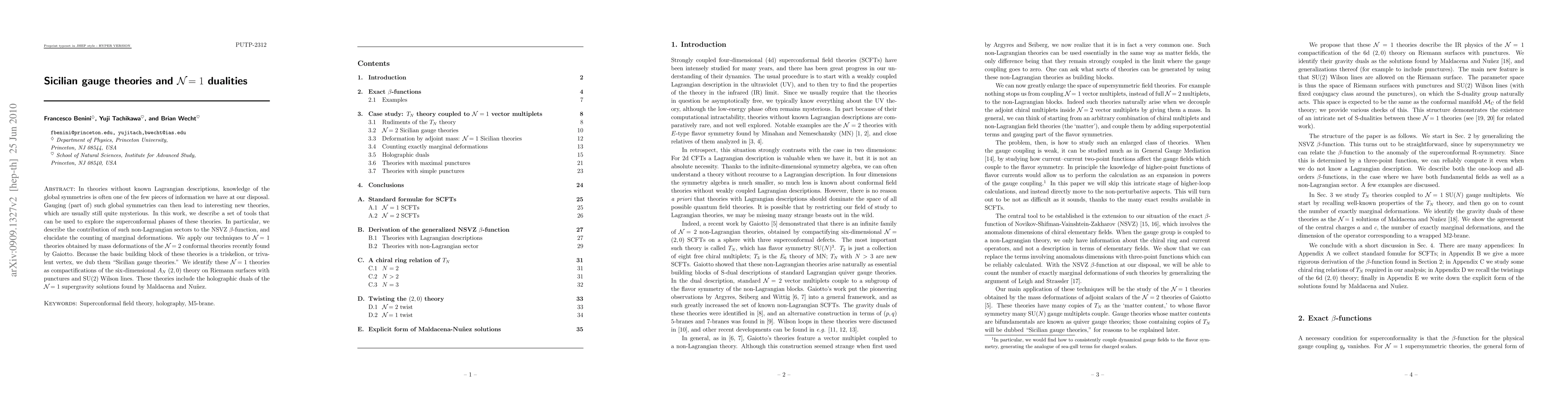 In theories without known Lagrangian descriptions, knowledge of the global symmetries is often one of the few pieces of information we have at our disposal. Gauging (part of) such global symmetries can then lead to interesting new theories, which are usually still quite mysterious. In this work, we describe a set of tools that can be used to explore the superconformal phases of these theories. In particular, we describe the contribution of such non-Lagrangian sectors to the NSVZ beta-function, and elucidate the counting of marginal deformations. We apply our techniques to N=1 theories obtained by mass deformations of the N=2 conformal theories recently found by Gaiotto. Because the basic building block of these theories is a triskelion, or trivalent vertex, we dub them "Sicilian gauge theories." We identify these N=1 theories as compactifications of the six-dimensional A_N (2,0) theory on Riemann surfaces with punctures and SU(2) Wilson lines. These theories include the holographic duals of the N=1 supergravity solutions found by Maldacena and Nunez.