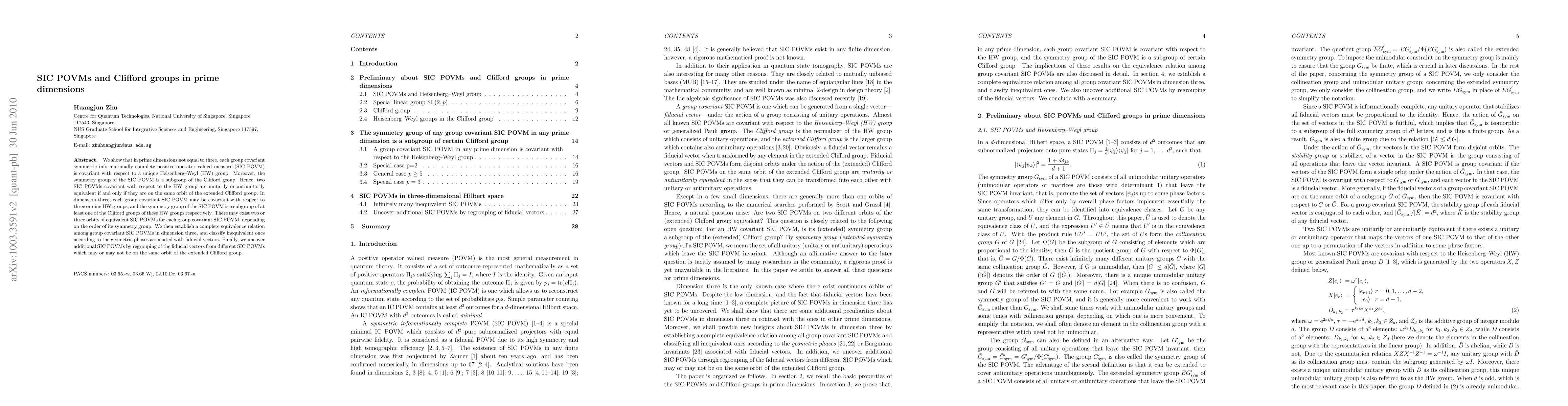 This paper explores the relationship between symmetric informationally complete positive operator valued measures (SIC~POVMs) and Heisenberg-Weyl (HW) groups in prime dimensions, showing that SIC~POVMs in prime dimensions (except three) are covariant with respect to a unique HW group and their symmetry groups are subgroups of the Clifford group. In dimension three, it classifies SIC~POVMs based on their orbits under the extended Clifford group and uncovers additional SIC~POVMs through fiducial vector regrouping.