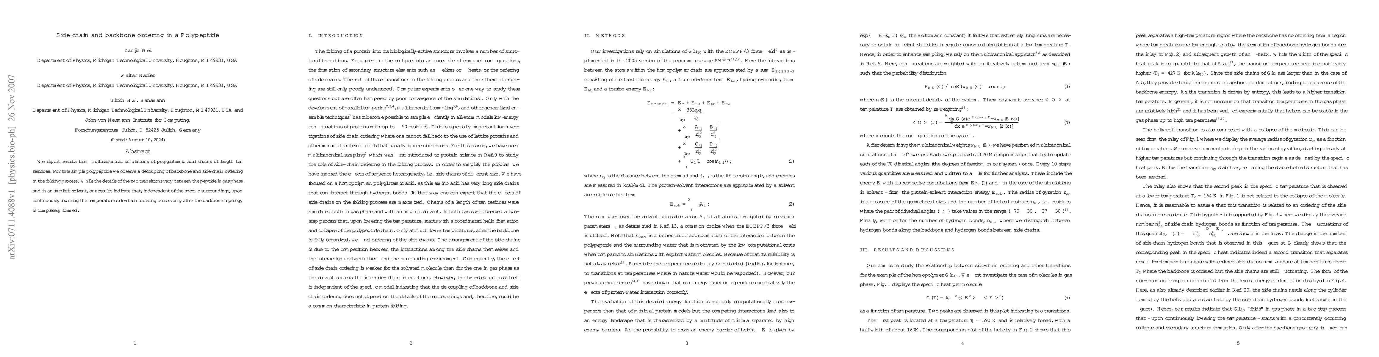 This research, using multicanonical simulations of short polyglutamic acid chains, discovers a separation of backbone and side-chain ordering in folding. The study shows side-chain ordering happens after complete backbone topology formation, a pattern consistent across gas phase and implicit solvent environments.