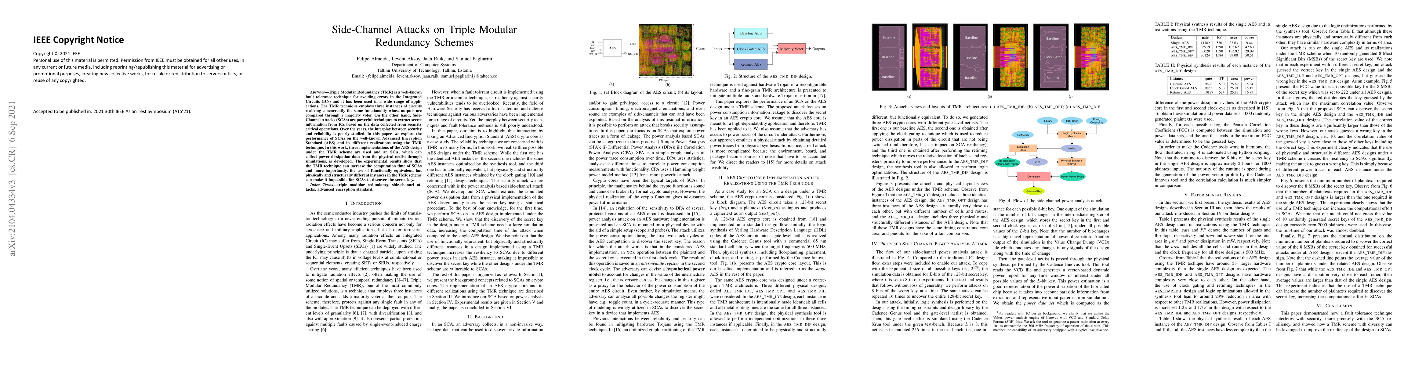 This paper investigates the impact of triple modular redundancy on side-channel attacks, revealing that contrary to expectations, such redundancy can actually enhance the system's resilience against these attacks. The study highlights the complex relationship between security and reliability in redundant systems.
