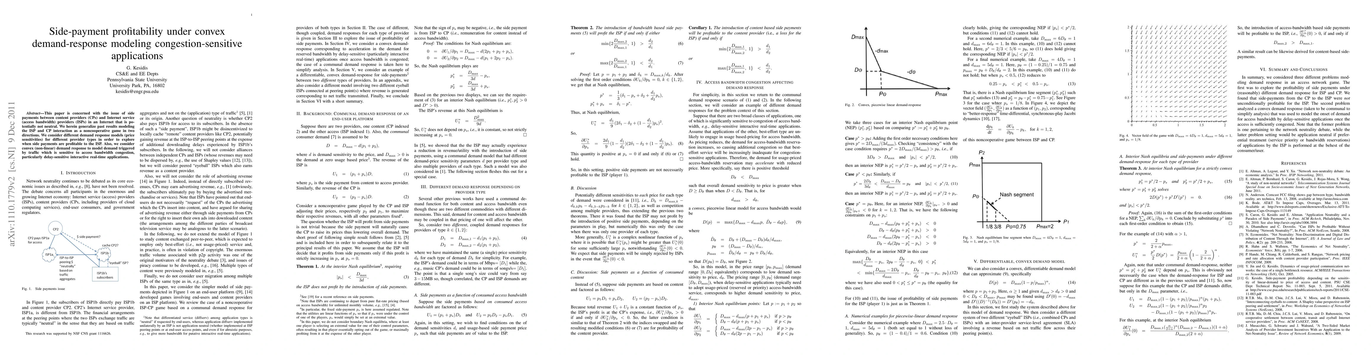 This paper examines side payments between content providers and ISPs in a non-neutral Internet, modeling their interactions as a noncooperative game under convex demand-response to congestion, and explores profitability under different demand models and competing ISPs with transit pricing.
