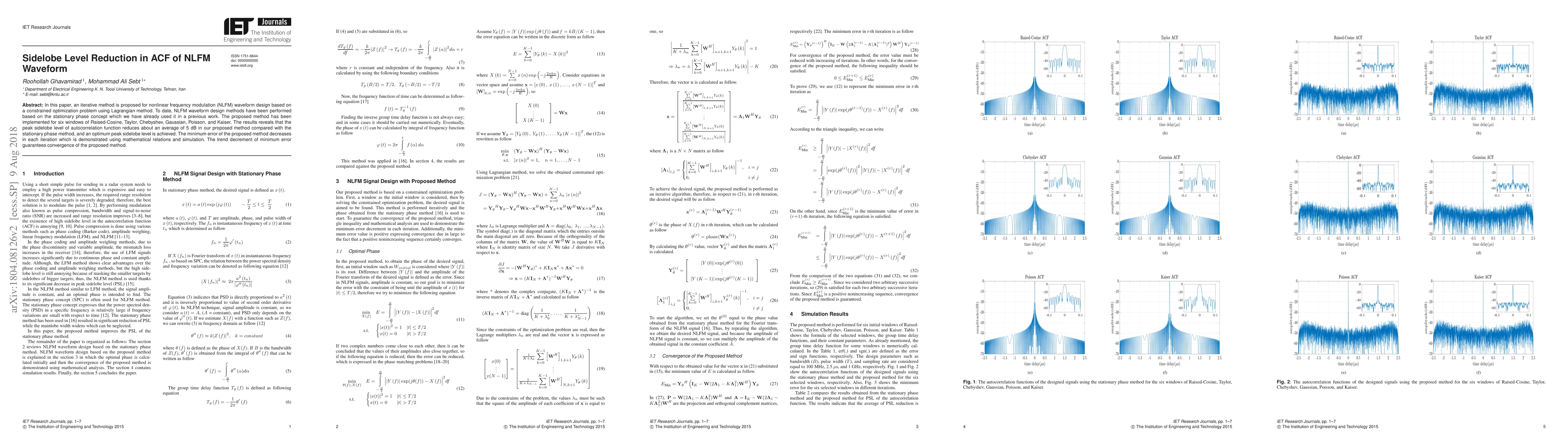 This paper proposes an iterative method for designing NLFM waveforms using a constrained optimization approach, achieving a 5 dB reduction in peak sidelobe level of the autocorrelation function compared to the stationary phase method. The method demonstrates convergence through a decreasing minimum error trend over iterations.