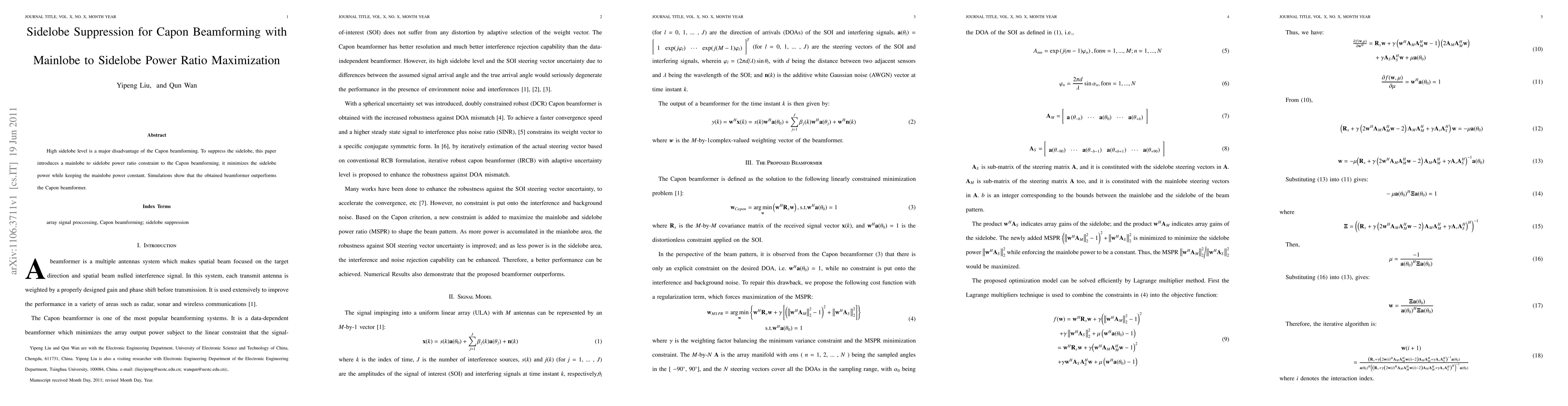This paper proposes a method to suppress sidelobes in Capon beamforming by incorporating a mainlobe to sidelobe power ratio constraint, achieving lower sidelobe levels while maintaining mainlobe power. Simulation results demonstrate superior performance compared to traditional Capon beamforming.