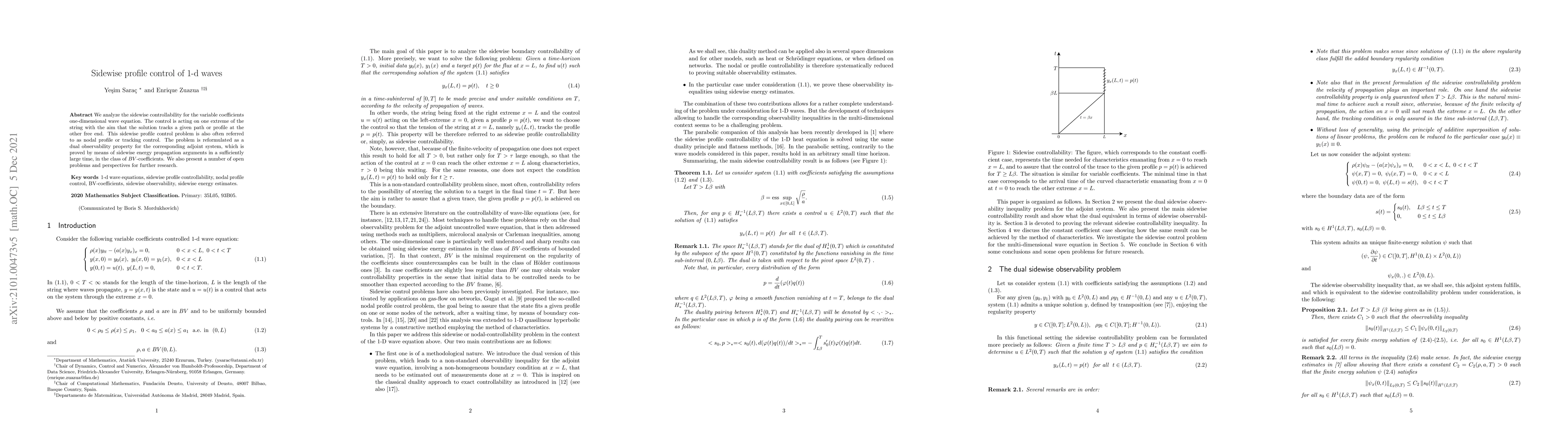 Researchers demonstrate sidewise controllability for 1-d waves, showing that it's possible to control a wave at one end of a string to track a specific path at the other end, using a new method based on dual observability.